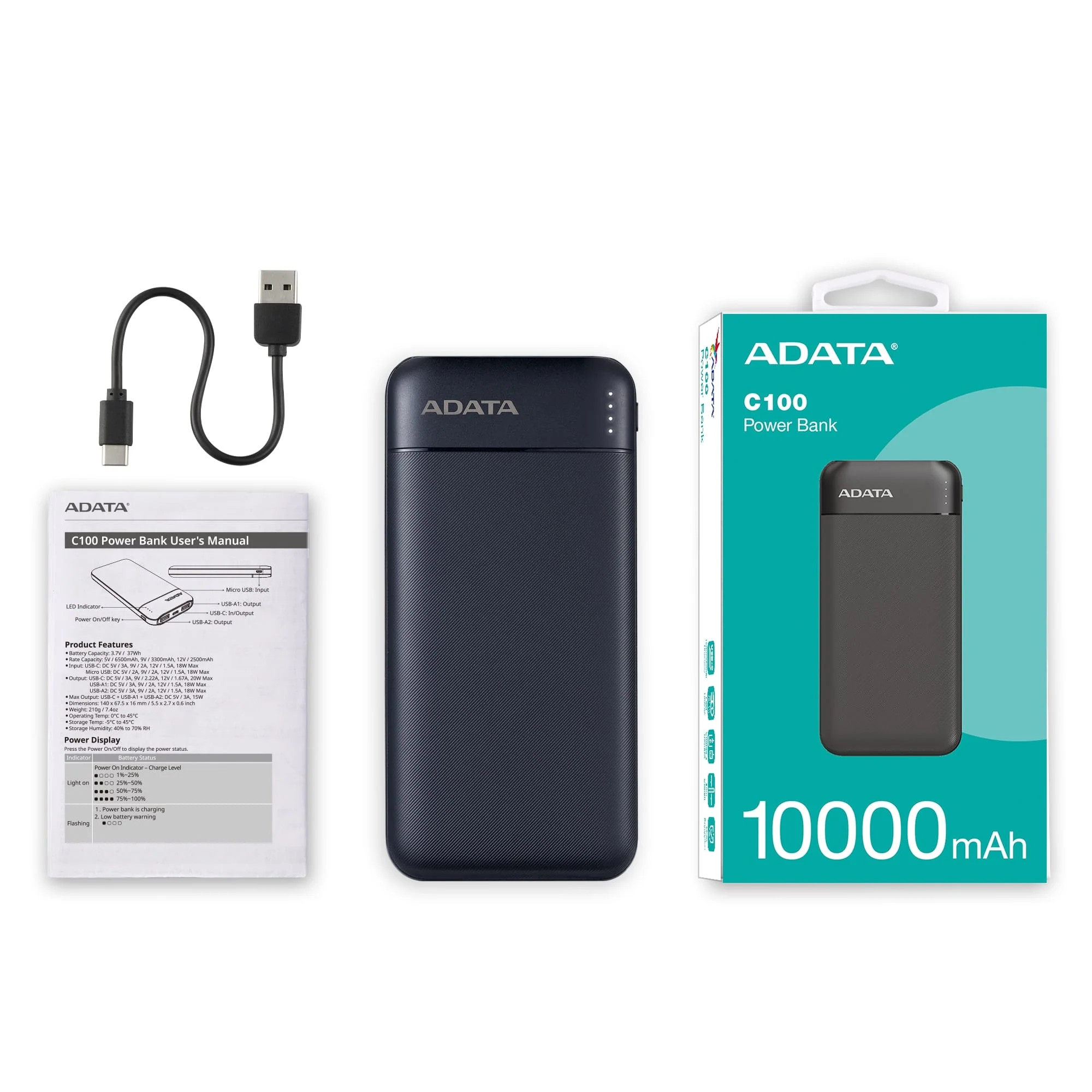 - ADATA C100 Portable Power Bank (10,000mAh, Black)