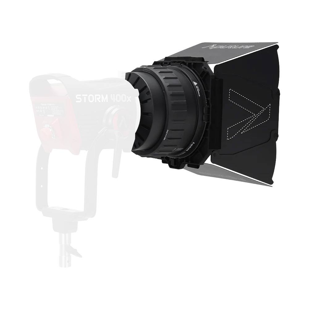 The CF7 Fresnel with Barn Doors Kit is a 7 inch Bowens Mount fresnel with included 8-leaf barn doors. It offers a beam range of 15º to 40º while maintaining a compact profile. The dual-expanding focusing system with multiple lens elements drastically reduces size and weight without compromising optical performance. The compact design is optimized for use with the STORM 400x.