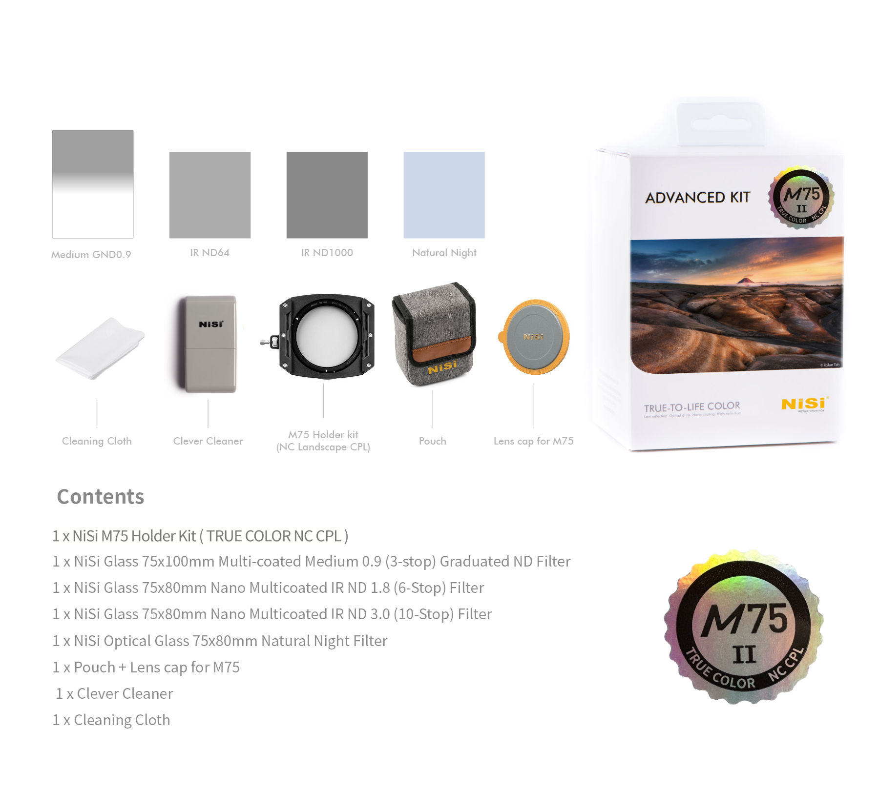 - The NiSi M75-II 75mm Filter Holder Advanced Kit comprises: