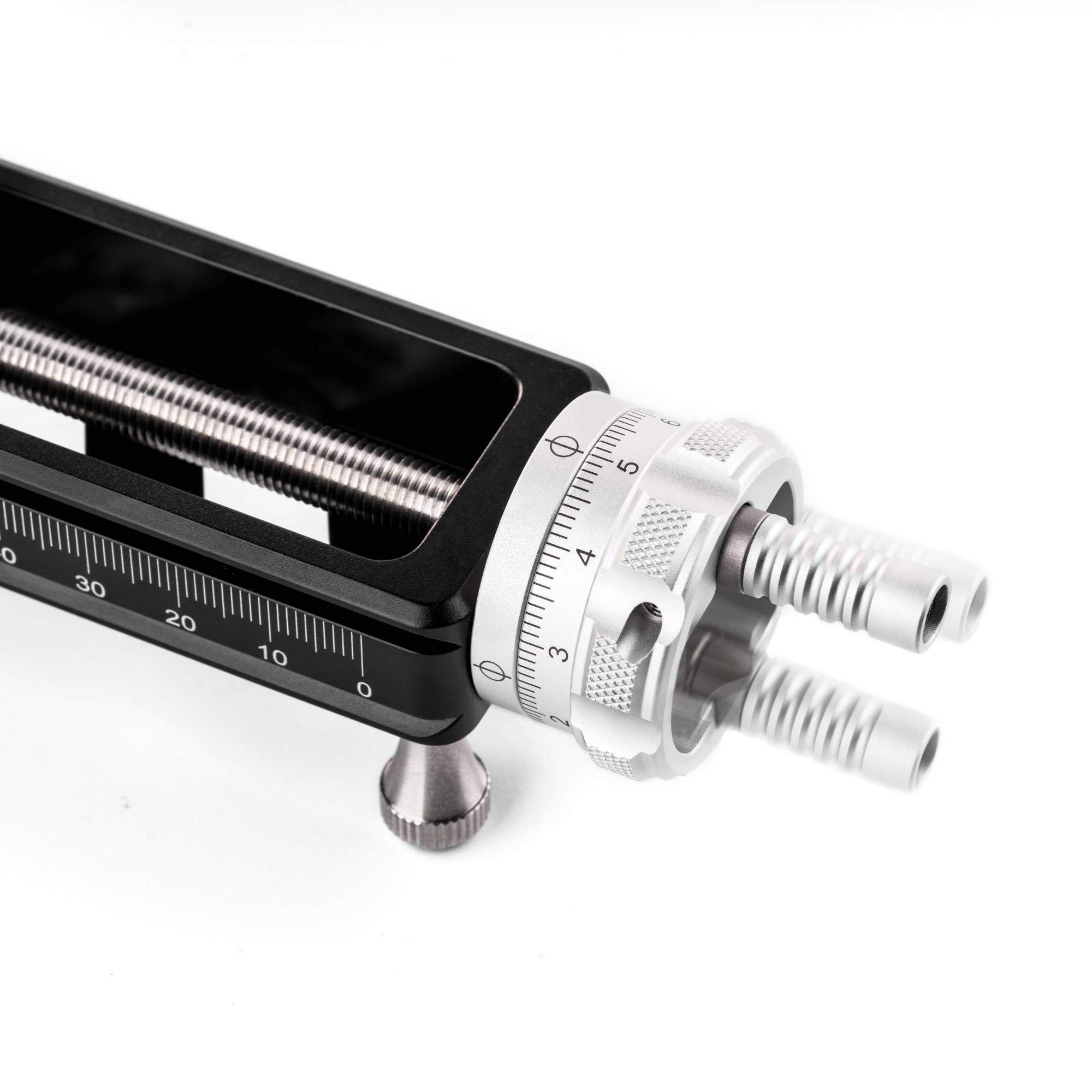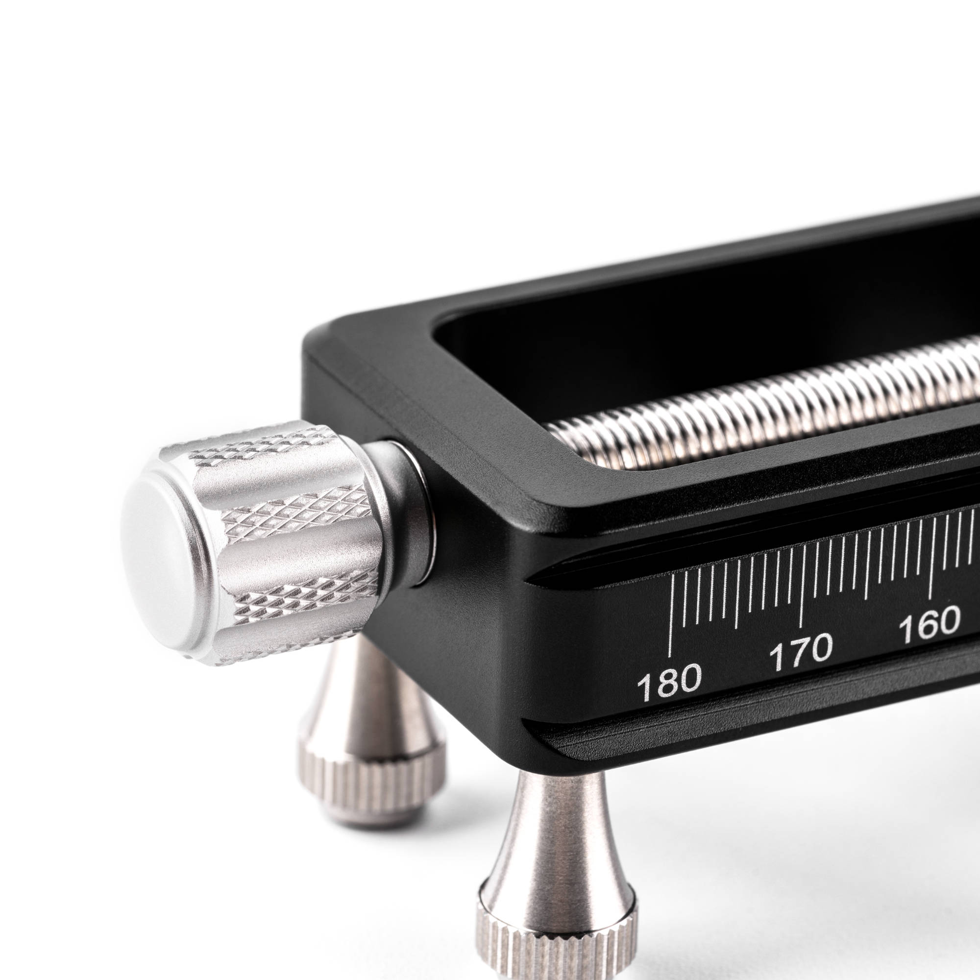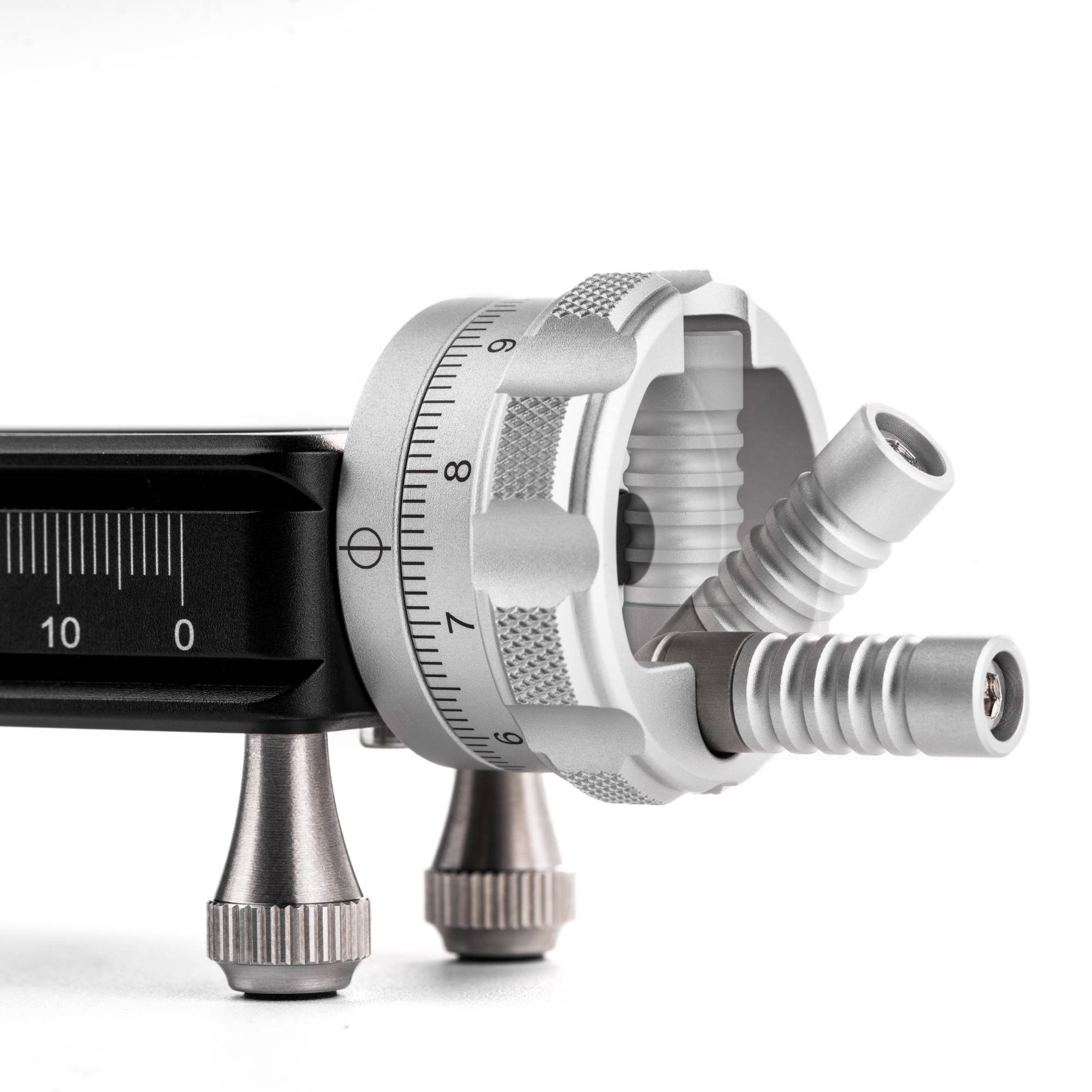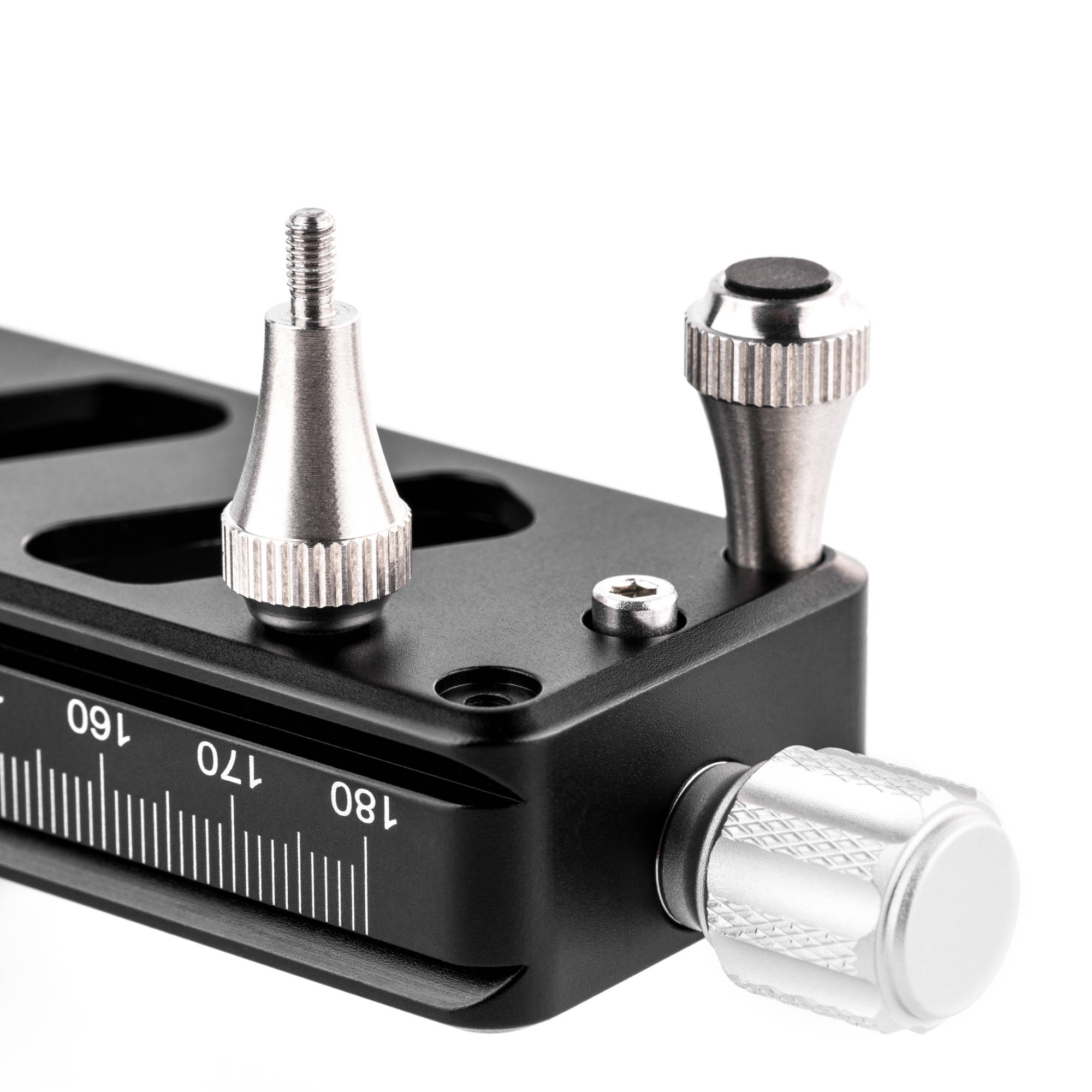 - The Macro Rail can be mounted in most Arca-type clamps/ball heads on the market and also includes four detachable foot nails that allow the use of the rail directly on the tabletop. The stage travel per revolution is 1mm with engraved index marks on both sides of the rail for fine adjustments. The bottom for the rail includes 3/8” and ¼” screw hole which allows the use of all tripod heads.