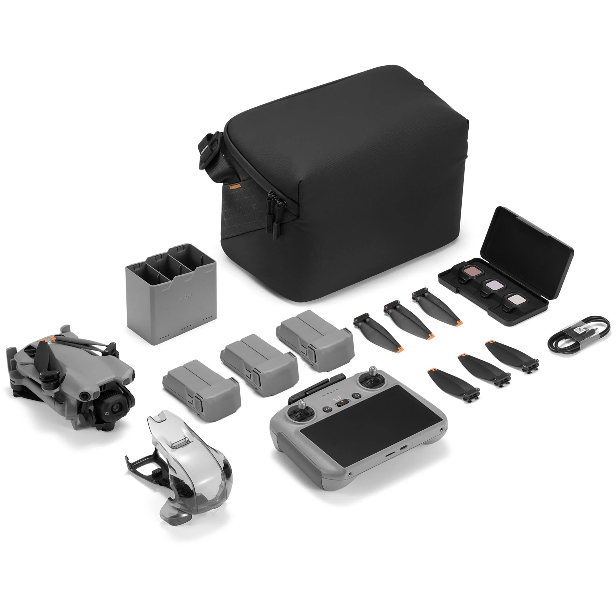 The DJI Mini 5 Pro Fly More Combo Plus (DJI RC2) equips creators with extended flight time and a full professional workflow, including three Intelligent Flight Battery Plus units, a Two-Way Charging Hub, spare propellers, shoulder bag, USB-C to USB-C cable, storage cover, and an ND Filter Set (ND8/32/128). Featuring the DJI RC2 remote controller with a built-in 5.5" display, this combo maximises airborne shooting time and convenience. Paired with the Mini 5 Pro’s 1-inch CMOS camera, nightscape omnidirectional obstacle sensing, 225° flexible gimbal rotation, and upgraded ActiveTrack 360°, it delivers flagship performance in a compact, ultra-light design. This combo includes the three Intelligent Flight Battery Plus batteries which offer an extended flight time of up to 52-minutes compared to the Standard Fight Batteries which offer a flight time of up to only 36-minutes.