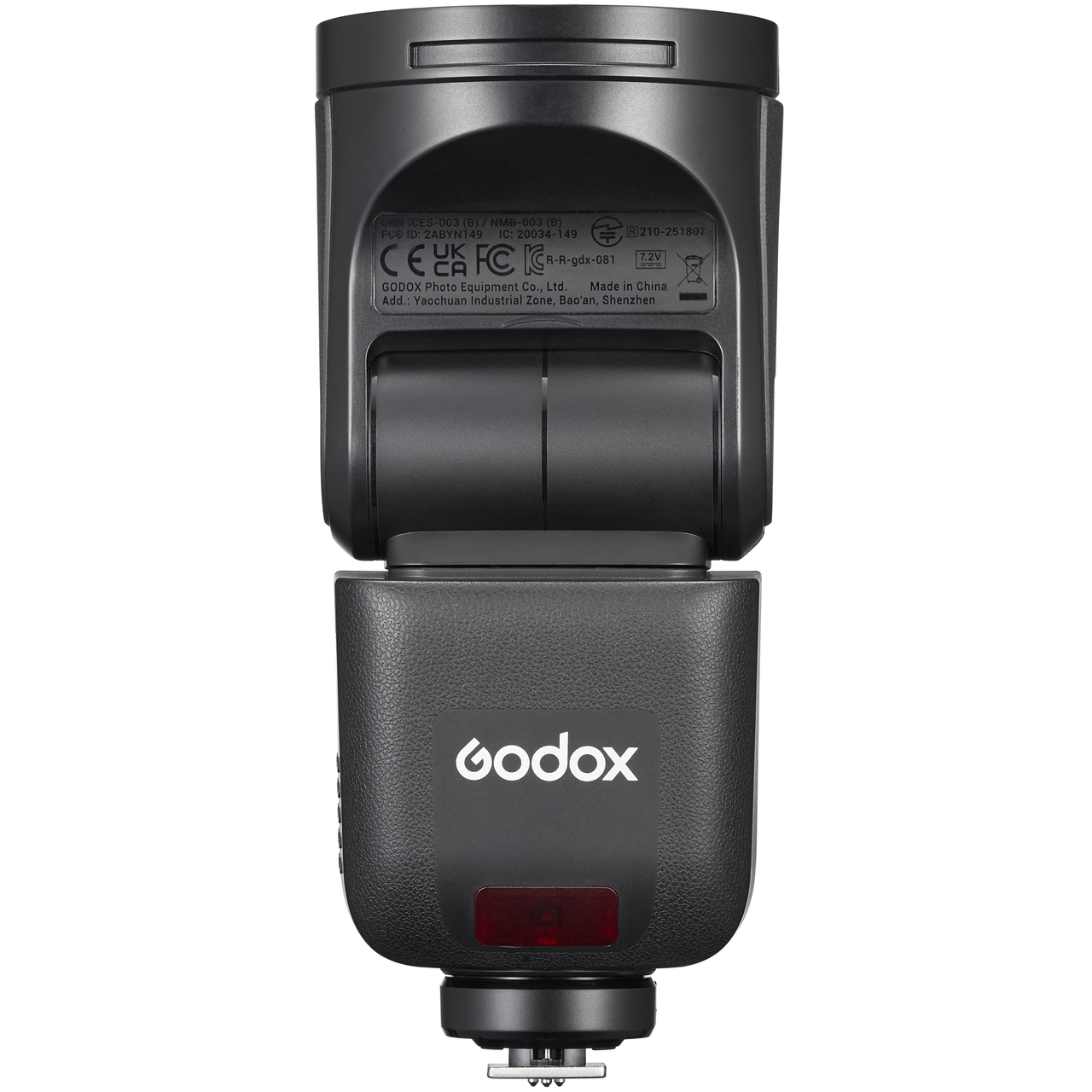 The V1mid F is powered by an included 7.2V 2200mAh lithium rechargeable battery, delivering up to 650 full-power flashes on a single charge. Flash duration ranges from 1/600 to 1/20,000 sec, supporting both action and low-light photography.