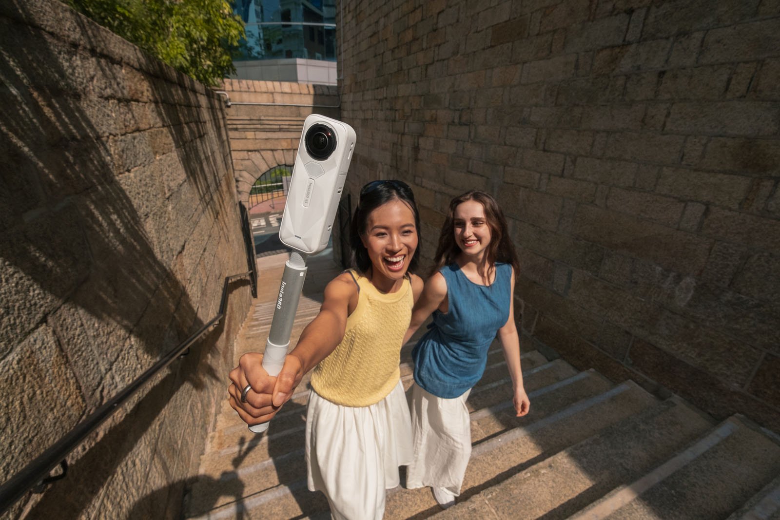 When the X5 is attached to a selfie stick, the stick disappears in your edit, enabling you to capture aerial angles and third-person perspectives that can be achieved without a second operator.