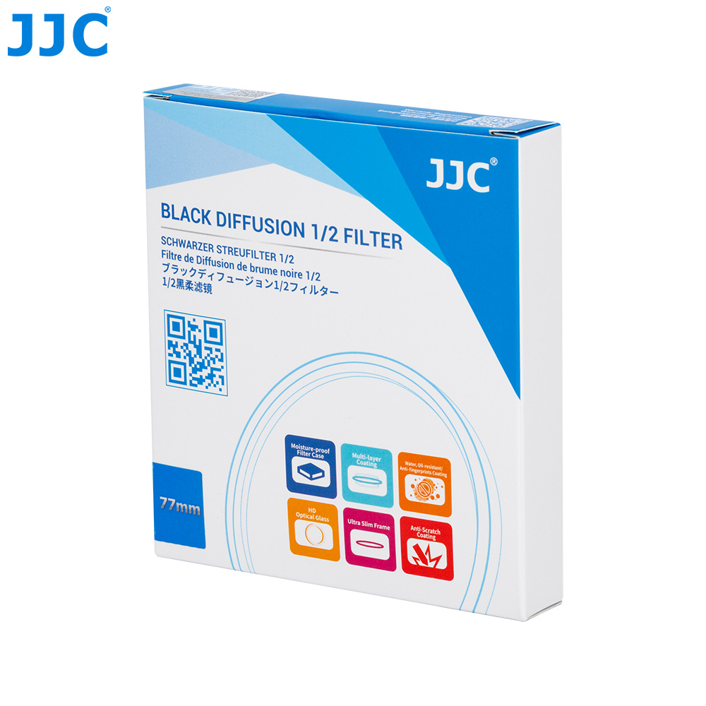 JJC F-BD Series Black Diffusion Filters are specially designed for digital cinematography and video. The filter helps reduce the value of the highlights while softening the overall contrast, creating a slightly reduced pearlescent halo around highlights that looks like it was taken with high-quality vintage lens. The filter works great for smoothing out unwanted blemishes, wrinkles or other details in a subject's face while keeping the general image in focus to enhance a subject's appearance further produce a desired effect.