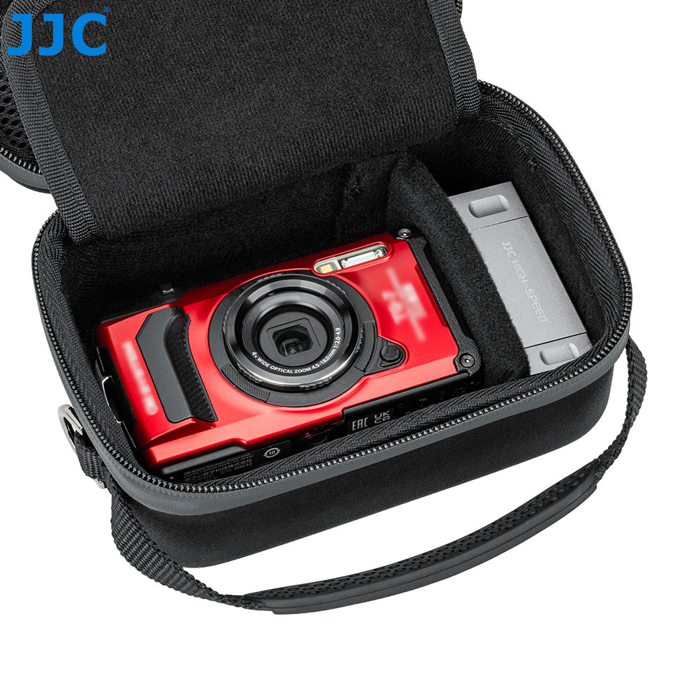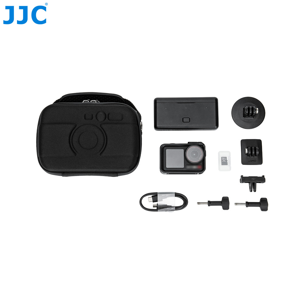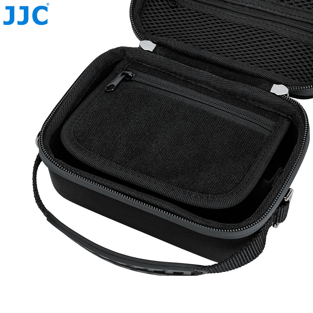 The JJC HSCC-3 Camera Case is compatible with DJI Osmo Action series, Insta360 Ace / Ace Pro series, GoPro HEROs, GO Ultra series, OLY TG series, and similar action cameras. Made of premium EVA material, it is sturdy, durable, and splash-resistant, offering reliable protection for your equipment. The dual-direction zipper allows easy access, and an adjustable shoulder strap provides flexible carrying options. The interior features a flocked lining, removable soft bottom pad, and dividers to protect and organize your gear.