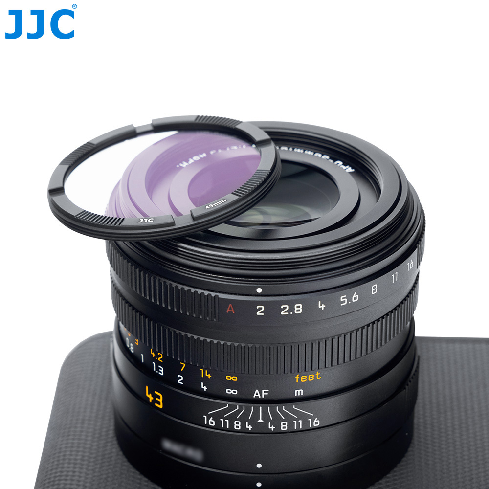 The JJC F-LQ3 L39 Ultra Slim Multi-Coated UV Filter is specially designed for LEI. Q3 43, Q3, and Q2 cameras. The filter frame is made of premium aluminum alloy, which is sturdy and durable. The thickness of the filter frame is only 3.7mm, it does not cause vignetting. Each side of the glass features 19 layers of coating, effectively reducing ghosting and reflections, making the image clearer. The glass is made of Ultra-clear glass and coated with an AR anti-reflective layer, covering the 400–680nm wavelength range. It offers ideal light transmission, with a transmittance of up to 99.3% and reflectivity as low as 0.15%. The L39 cut-off coating effectively blocks ultraviolet rays below 390nm. The filter is scratch-resistant, anti-static, water-repellent, and oil-resistant. This filter adopts an ultra-slim embedded design, which does not affect macro shooting and does not interfere with the use of the original lens cap or lens hood. It solves the problem where standard UV filters cannot be used for macro photography when a lens hood is attached.