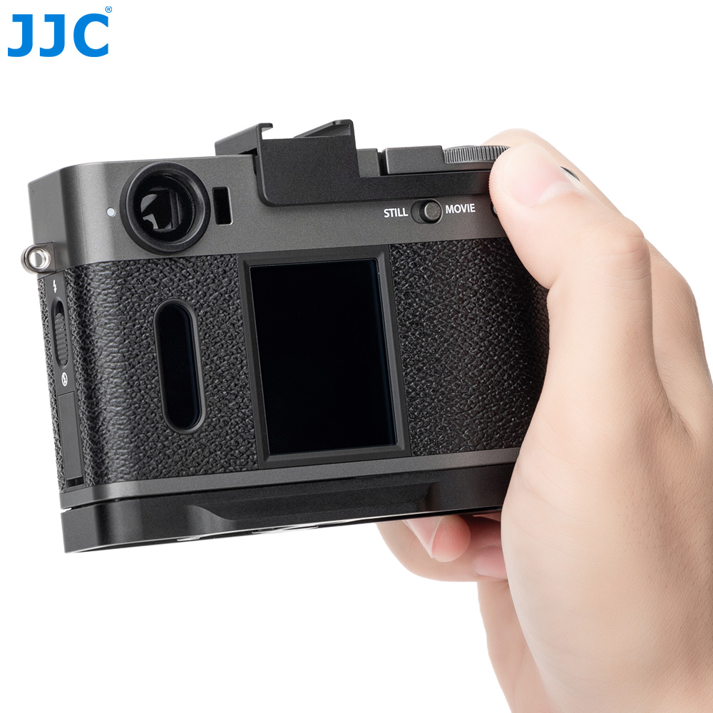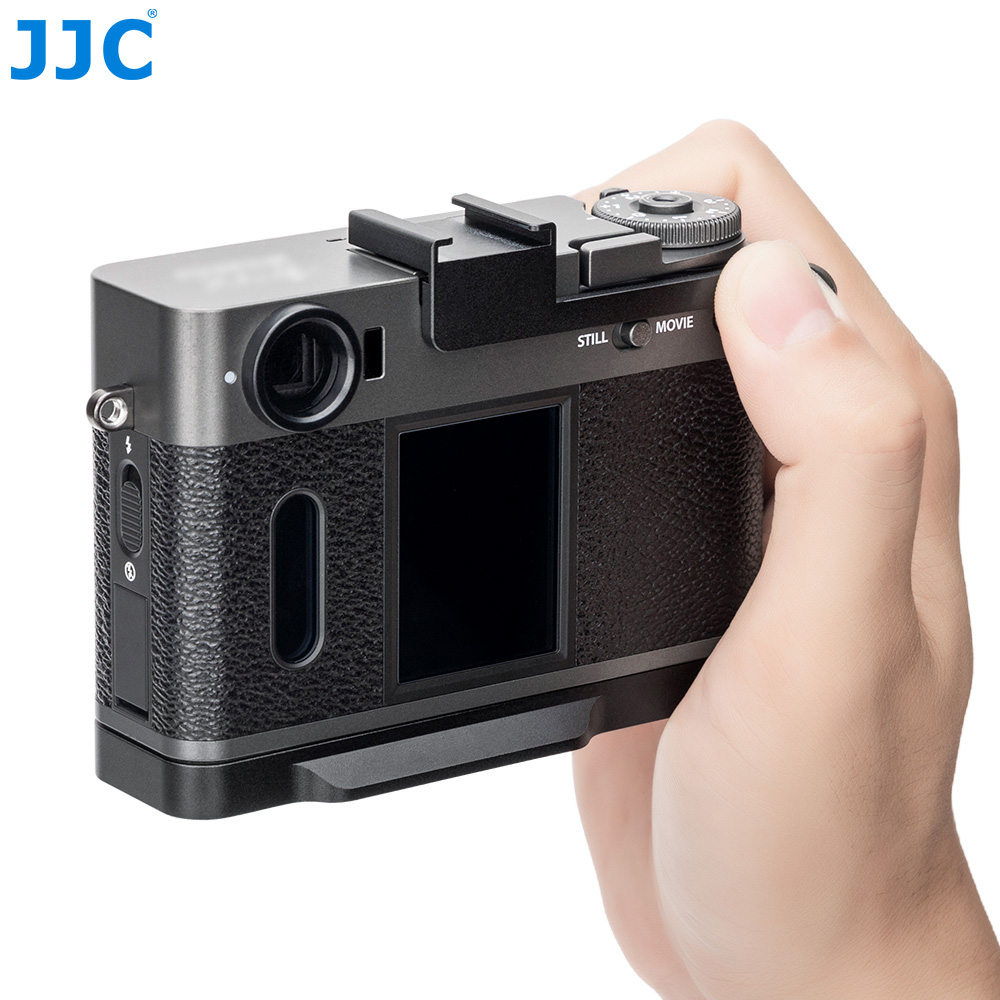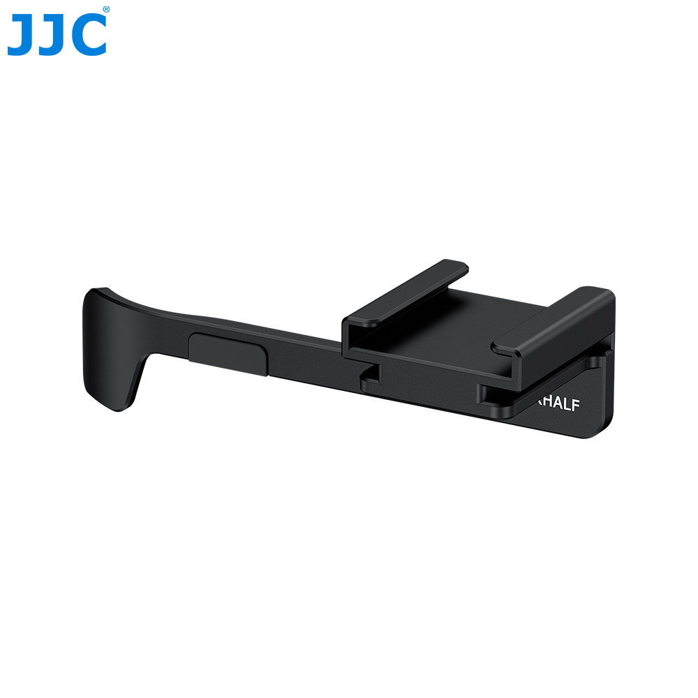 The JJC Thumb Up Grip is specially designed for FUJI X half cameras to enhance comfort and stability while shooting. Made of premium aluminum alloy, this grip is sturdy and durable, providing ergonomic rear thumb support for improved handling. It installs quickly via the camera's hot shoe and is available in black, dark gray, and silver.