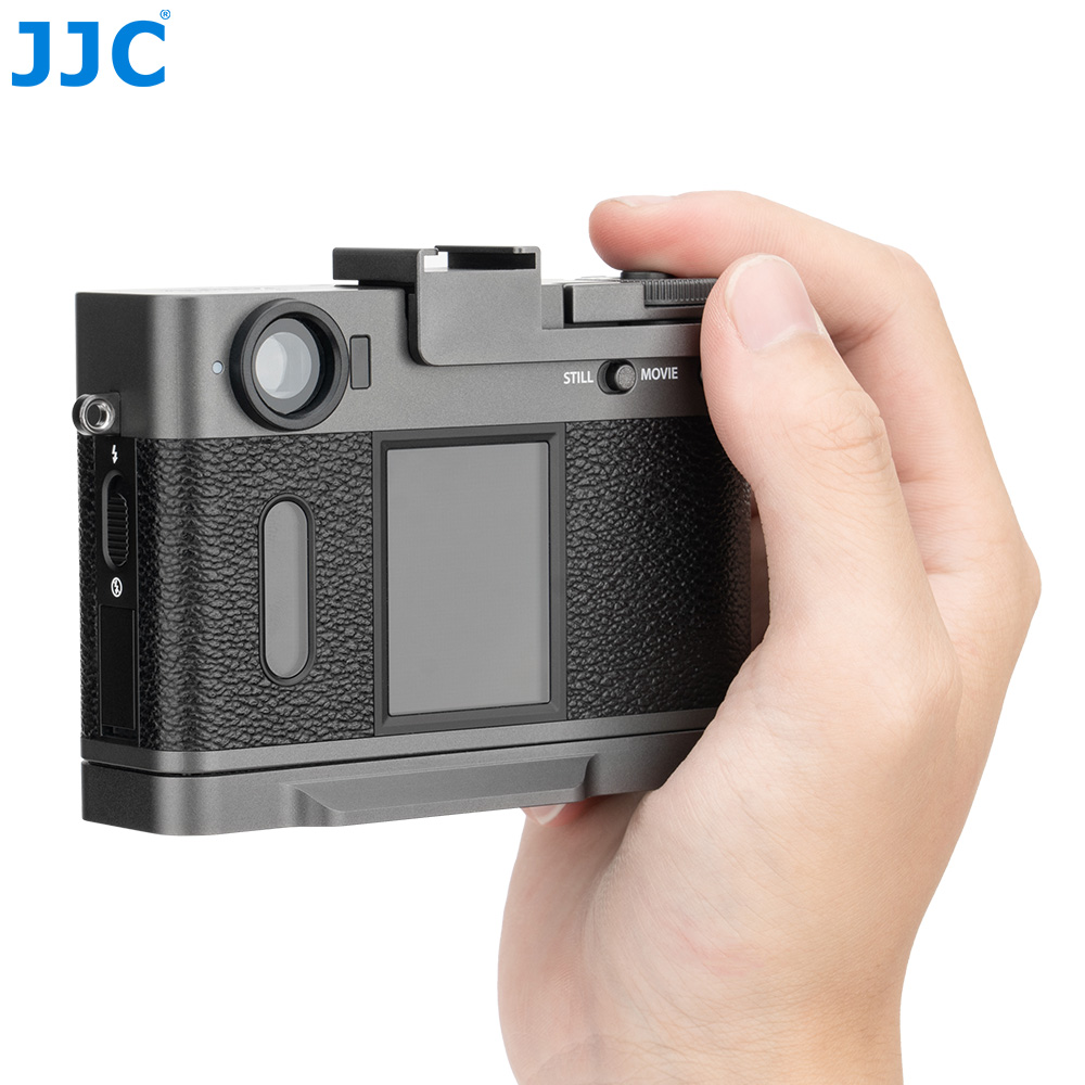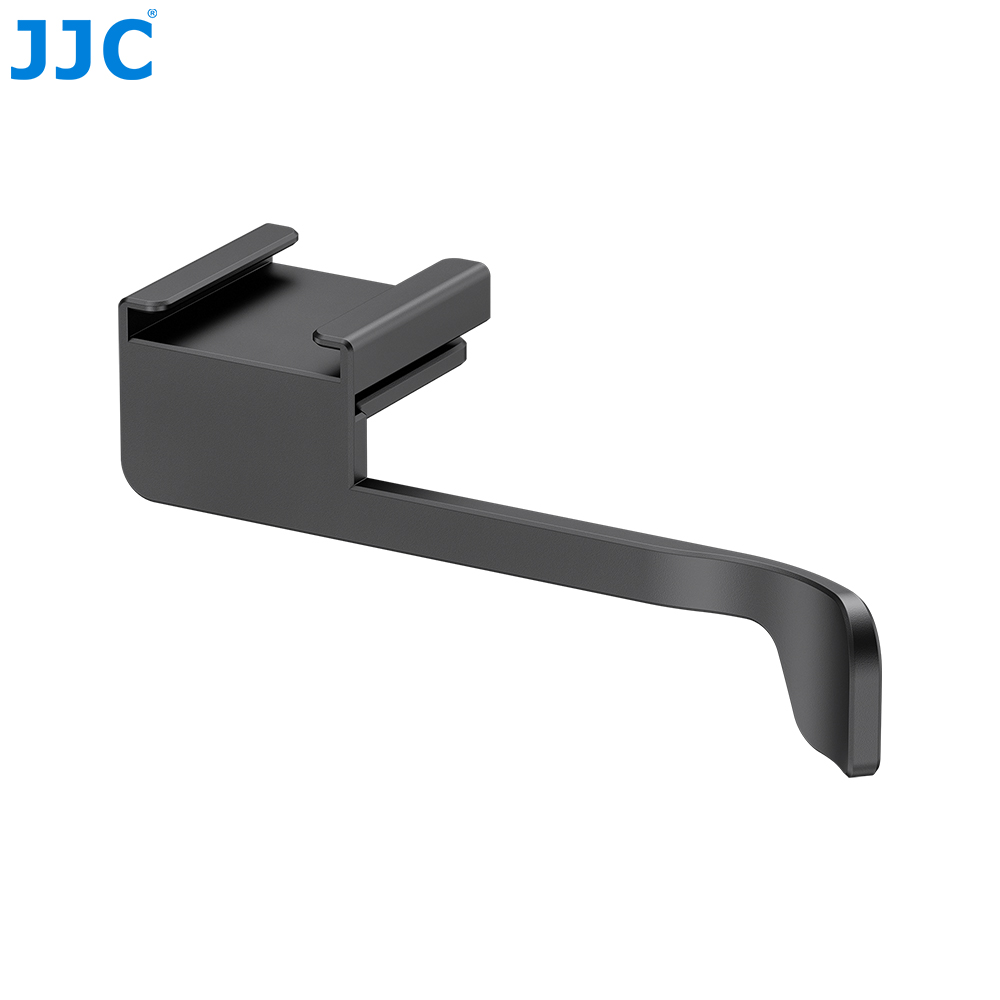 The JJC Thumb Up Grip is specially designed for FUJI X half cameras to enhance comfort and stability while shooting. Made of premium aluminum alloy, this grip is sturdy and durable, providing ergonomic rear thumb support for improved handling. It installs quickly via the camera's hot shoe and is available in black, dark gray, and silver.