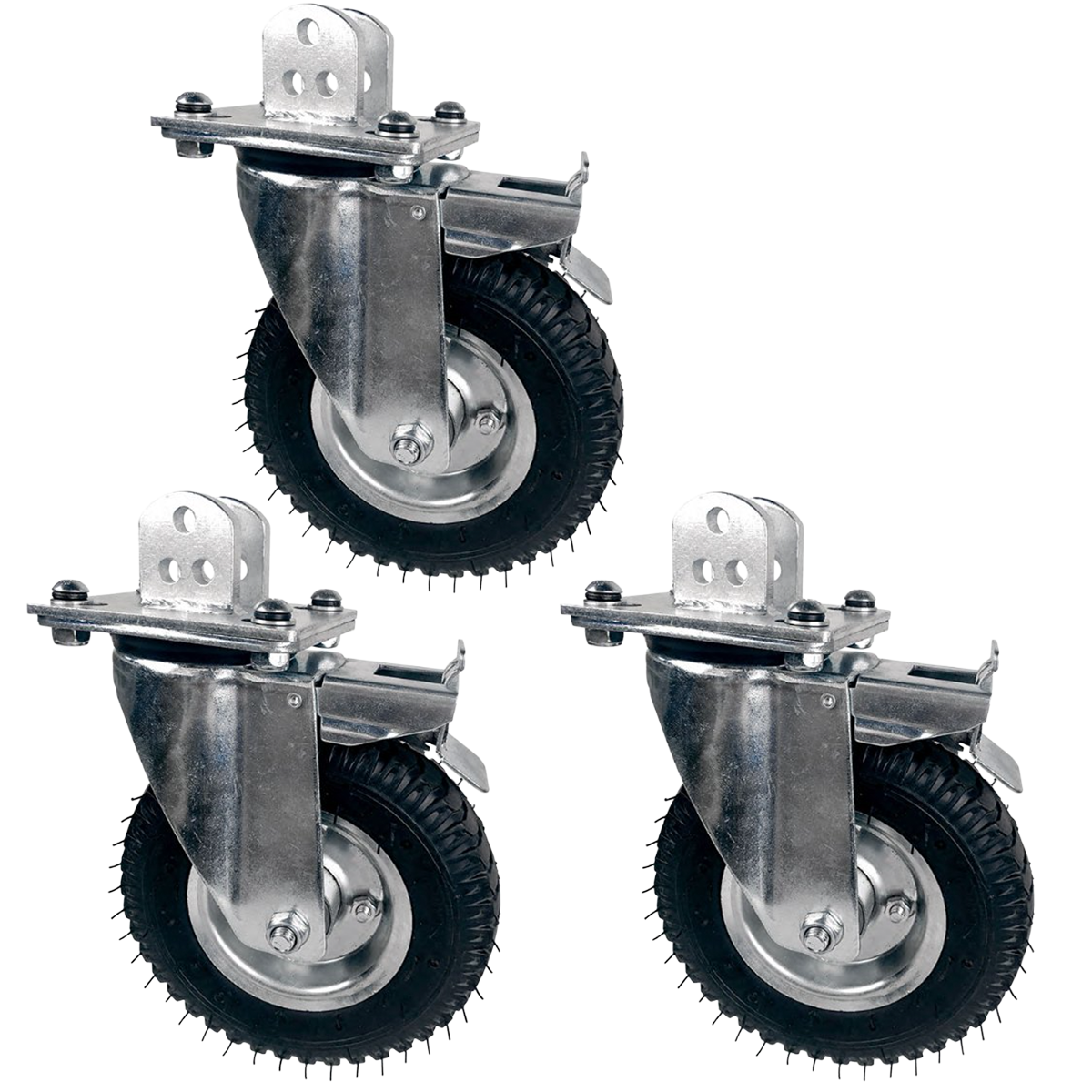 The KC-215A pneumatic caster wheels are built to fit 35 mm leg diameters and attach easily to compatible Kupo 484 and 485 stands. The adjustable angle plate ensures the stands remain stable even when casters are detached, allowing maximum flexibility in various production environments. The durable design ensures consistent performance across both indoor and outdoor surfaces.