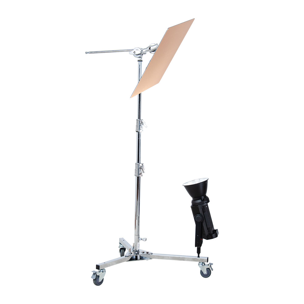 The Kupo Mighty Runway Stand Base with Extended Leg is a heavy-duty chrome-plated steel support base designed for superior stability and versatility. Ideal for boom rigs or mobile C-stand setups, this durable base supports up to 70 kg and includes caster wheels for smooth transport across studio or location environments.