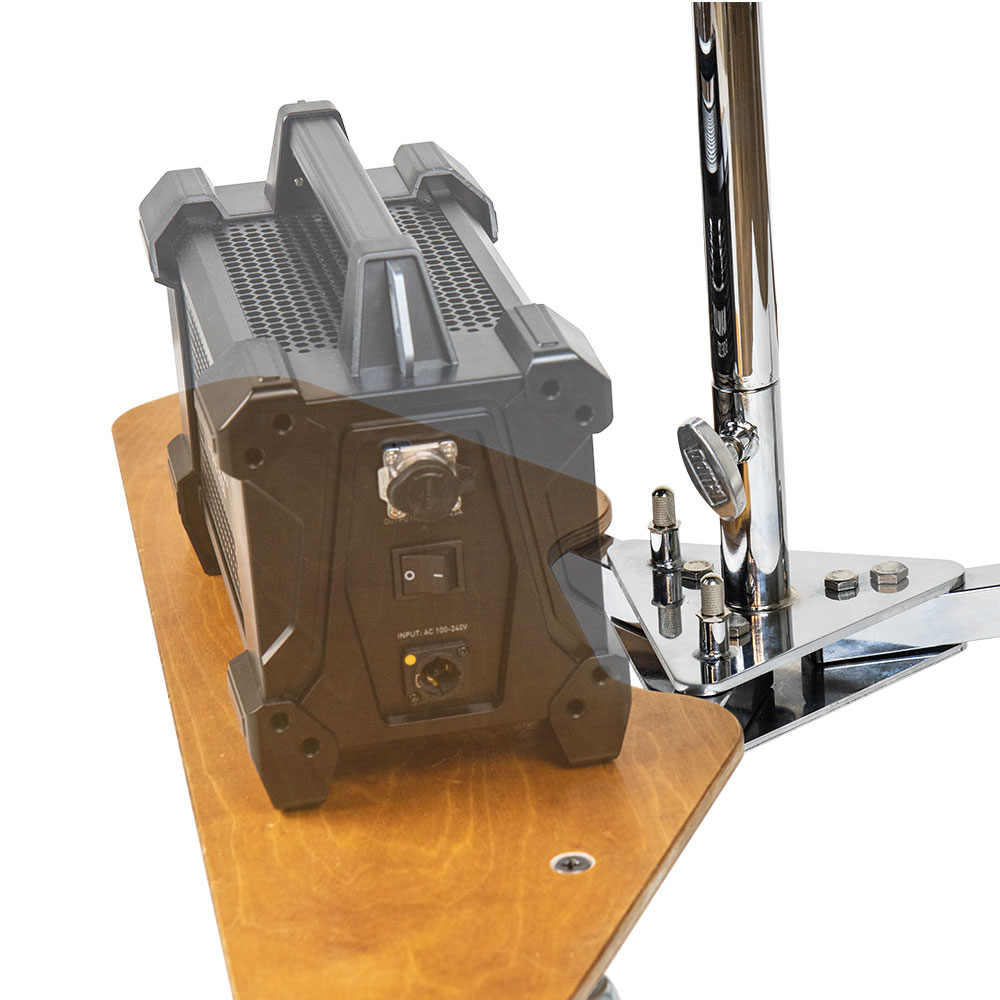 This stand base is compatible with the optional Kupo Mighty Runway Stand Base Platform (KAB-351), which provides extra counterweight support or a mounting area for ballast and accessories.
