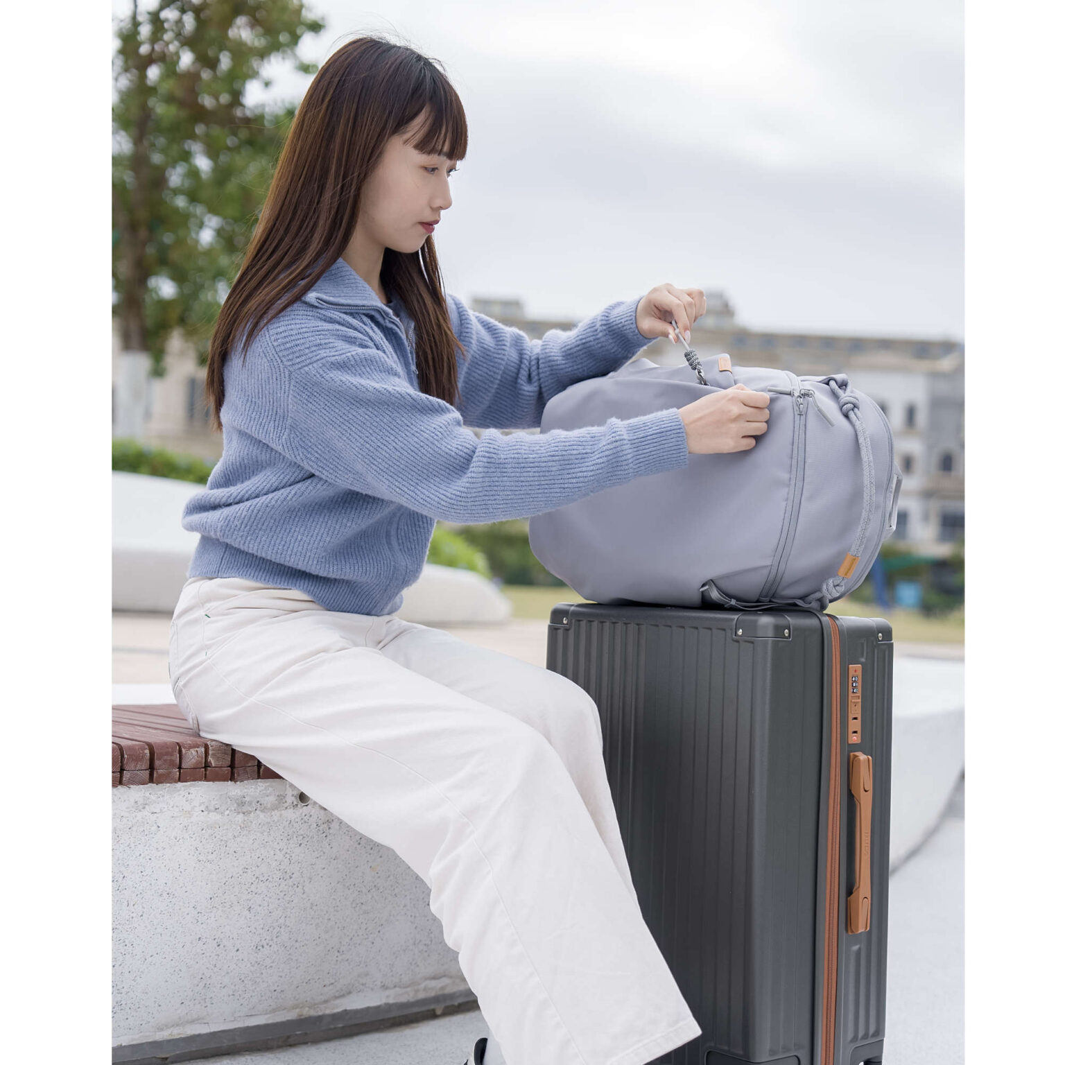 The integrated trolley sleeve allows the backpack to slide securely over rolling luggage handles, simplifying airport and transit travel. Its compact size and efficient layout make it ideal for carry-on use and hybrid work-and-shoot days.