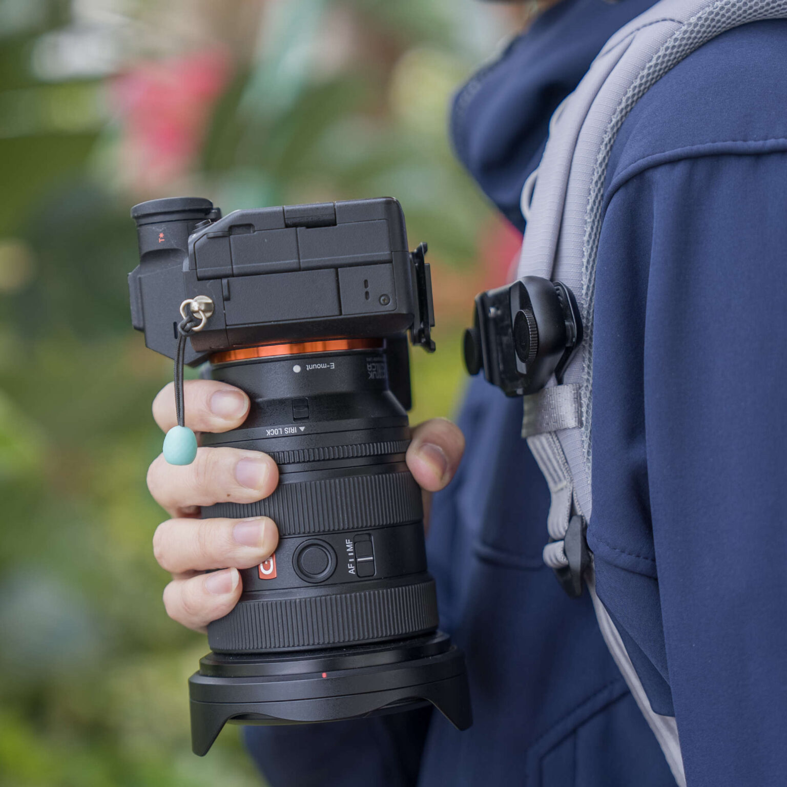 A side-mounted tripod holder supports compact tripods or monopods, while a dedicated water bottle pocket ensures easy access to hydration. Additional attachment points allow for expanded carrying options without compromising the bag’s streamlined profile.