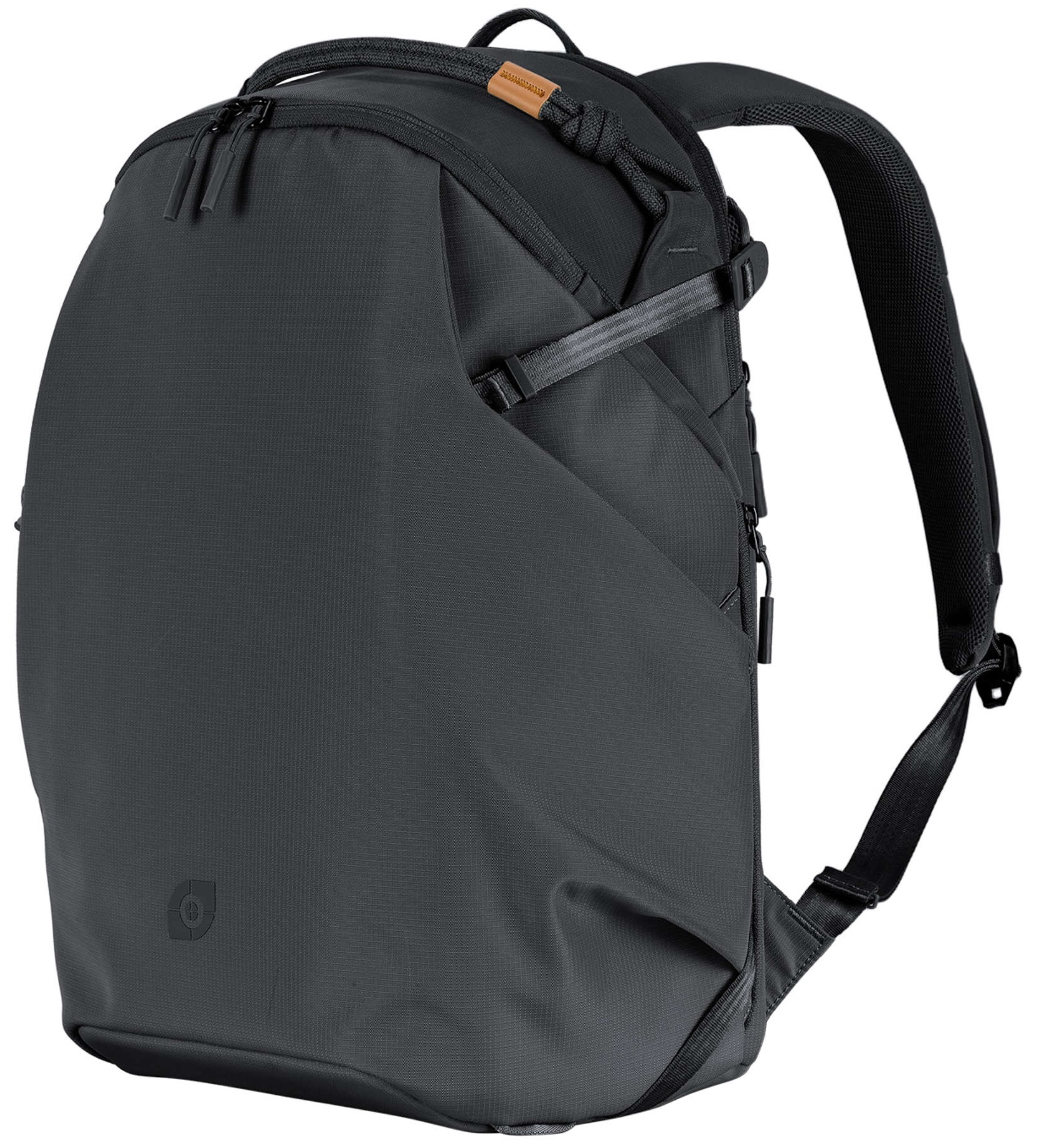 The integrated trolley sleeve allows the backpack to slide securely over rolling luggage handles, simplifying airport and transit travel. Its compact size and efficient layout make it ideal for carry-on use and hybrid work-and-shoot days.