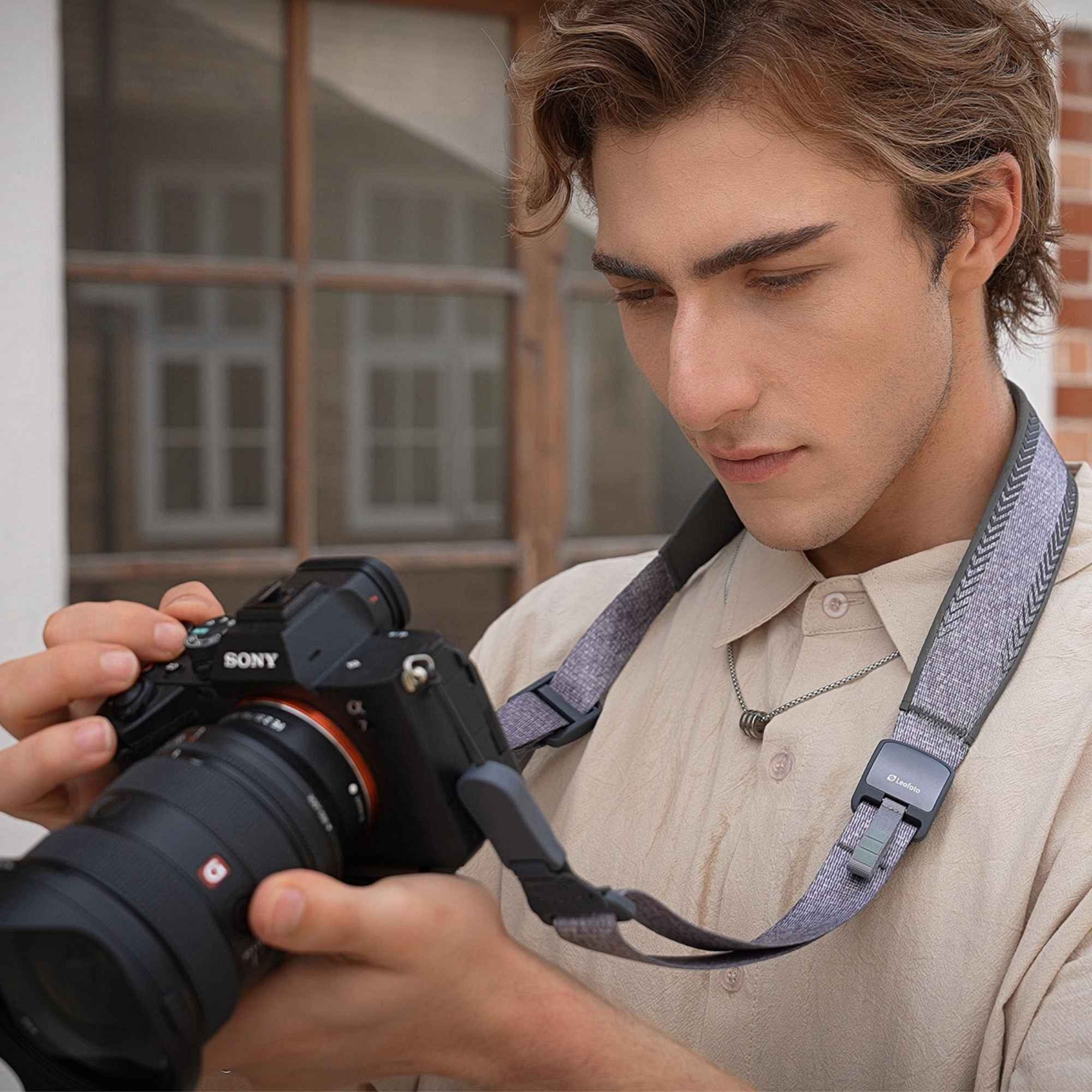 The Leofoto L-CS-207-210 Series Camera Strap (Cloud Rock Gray) offers unmatched comfort, durability, and style for photographers on the go. Designed to be worn around the neck, over the shoulder, or cross-body, it supports compact DSLR and mirrorless cameras with ease, while minimizing neck and shoulder strain.