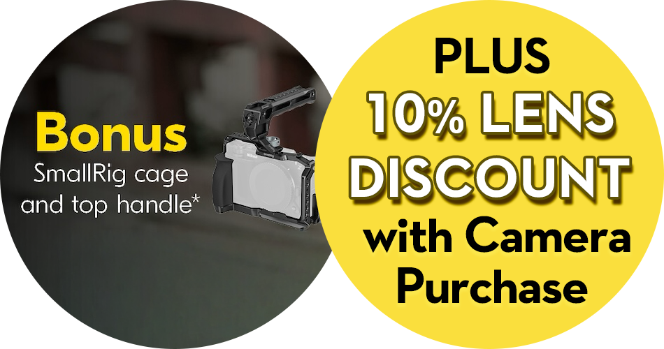 Purchase a Nikon Full-Frame Camera Body and receive a 10% discount on an eligible Nikon Z Full-Frame lens* (not the camera body), applied automatically at checkout, both in-store and online.