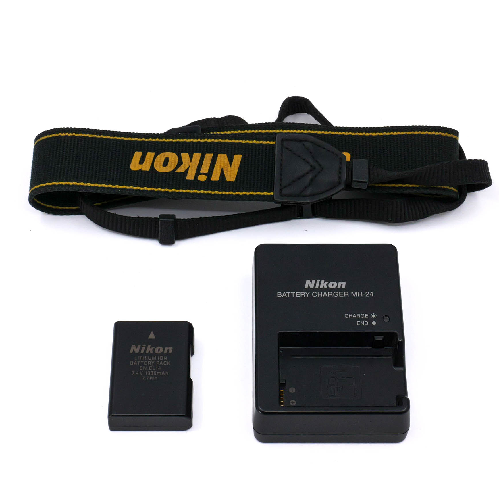 Shutter count: 30,000. Comes with strap, battery, and charger.