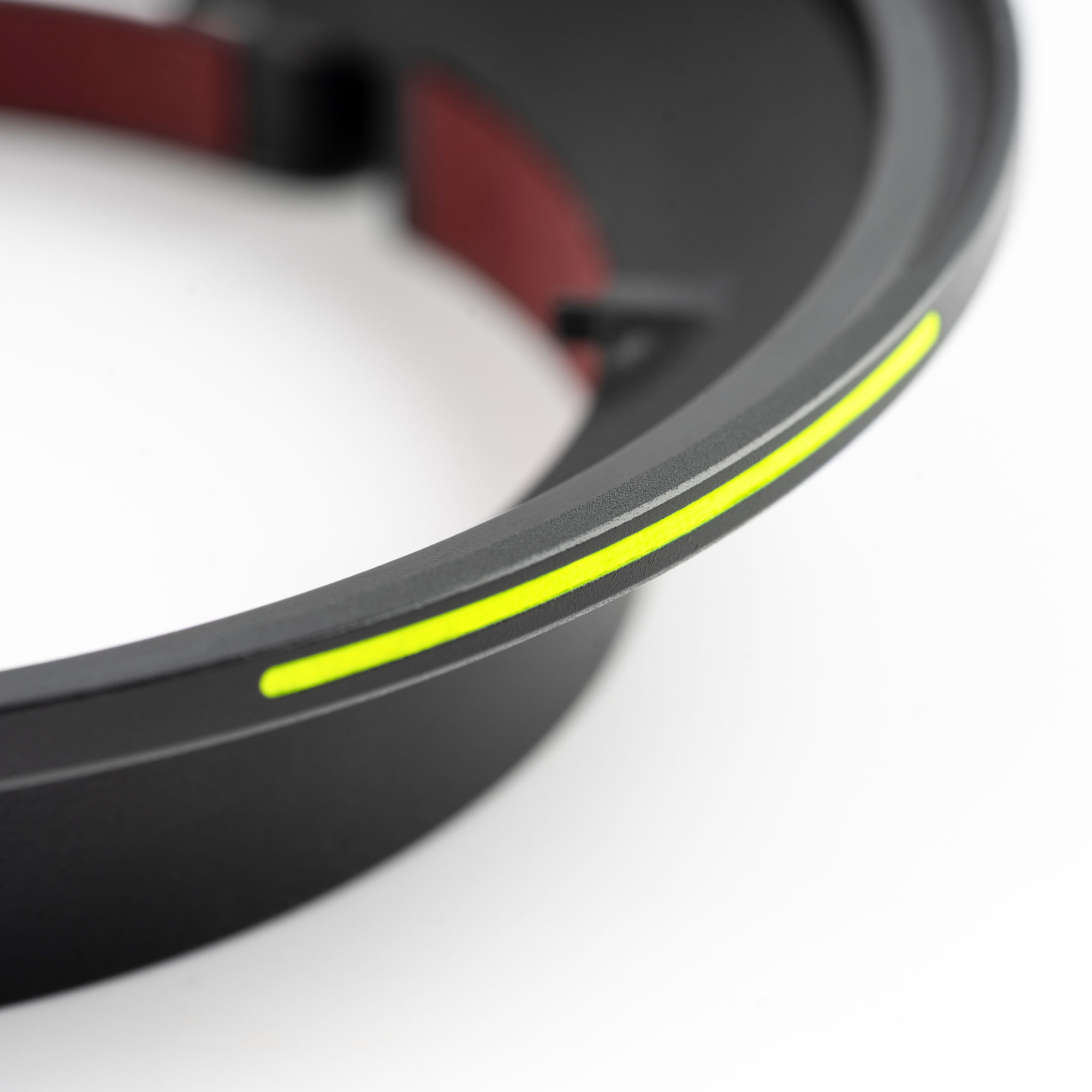 Constructed from a single-piece aluminum body for lightweight durability. Alcantara®-lined interior protects the lens barrel finish, while the luminous position mark allows easy alignment in low-light conditions.