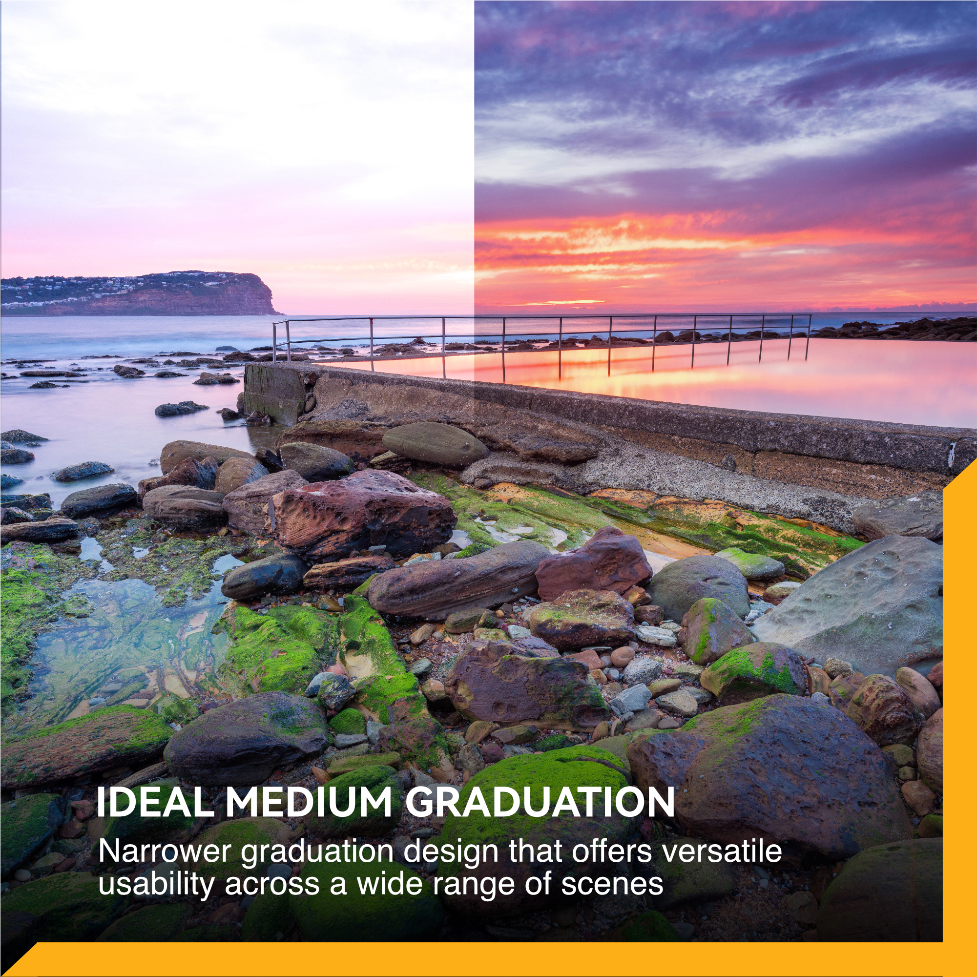 Perfect for golden hour landscapes, dramatic seascapes, and city skylines, delivering a natural in-camera look that reduces post-processing time.