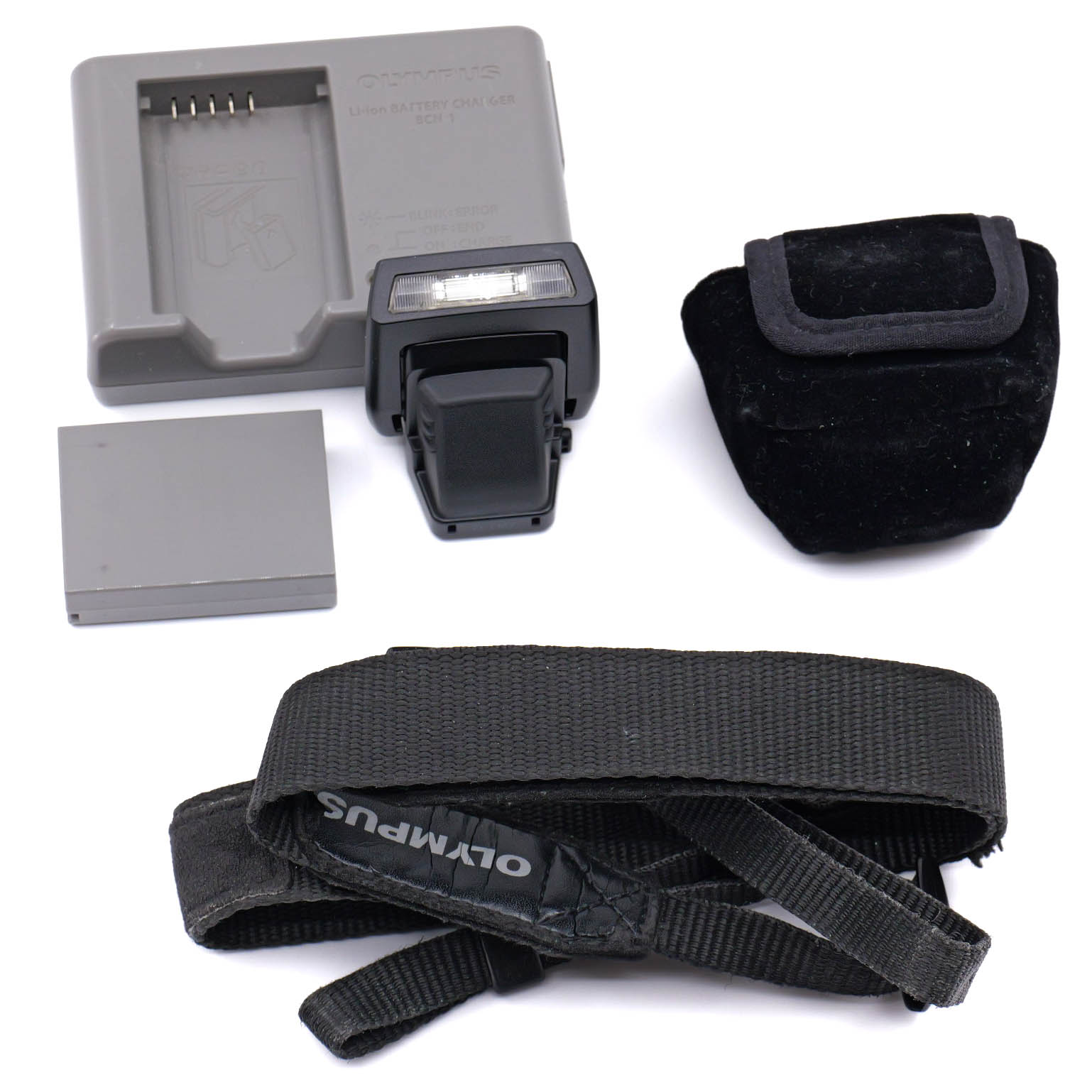 Comes with box, manuals, battery, charger, strap, flash, and body cap.