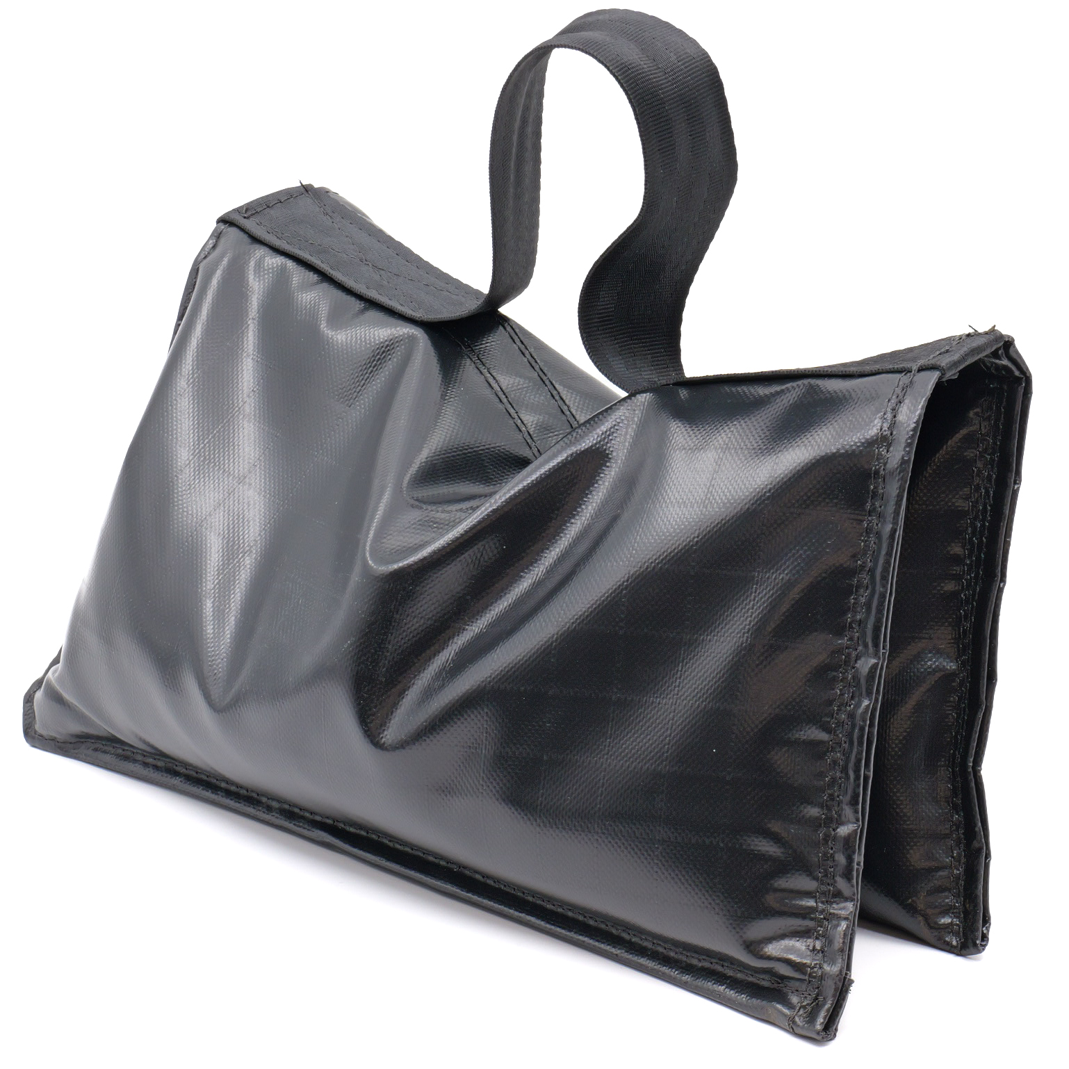 The Sandbag 6kg (Black, Cordura Nylon) features a saddlebag design that makes it ideal for draping over light stand legs that are supporting heavy gear, or battening down materials in windy and rainy conditions. The sturdily constructed bag includes a top handle for easy use and heavy-duty "D" rings for booms equipped with counterweight hooks.
