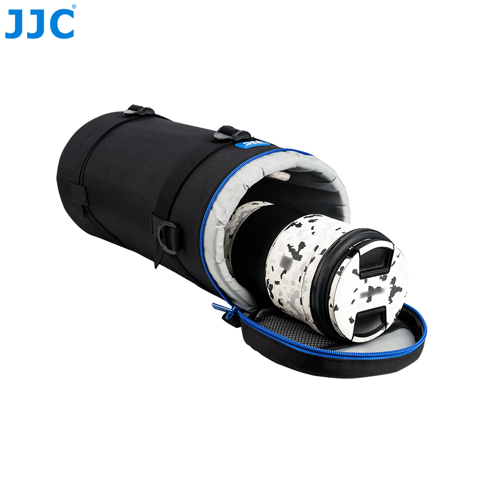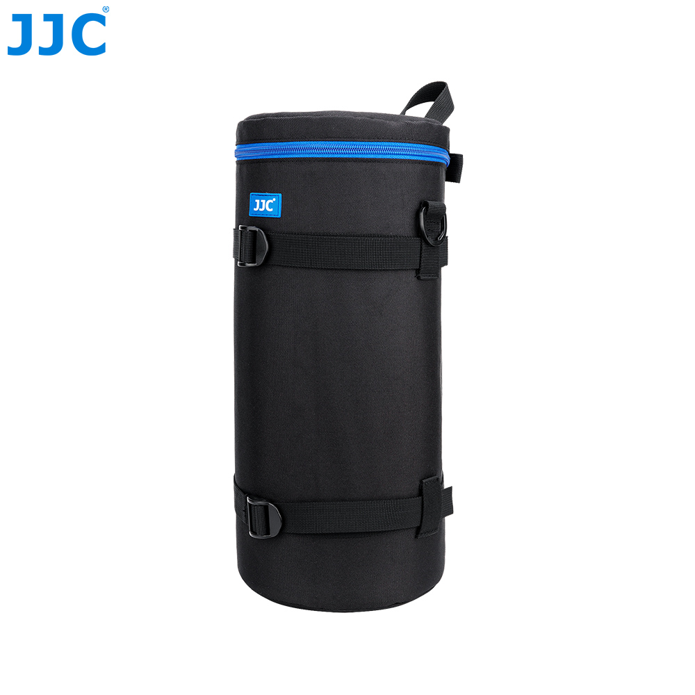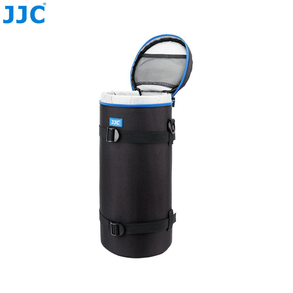 JJC Deluxe Lens Pouch is designed to carry a typical SLR lens. This pouch features heavy-duty polyester construction with a foam cushion interior. It provides great protection and shock absorption for your lens. Besides, its exterior material is water-resistant, which can protect your lens from rain and moisture. It has deep blue two way zipper with a mesh accessory pocket inside the lid. The two zipper sliders are designed with small loops, thus you can lock them together with a small lock for security. You can put the small accessory, such as lens cap or remote controller, into the inside pocket.