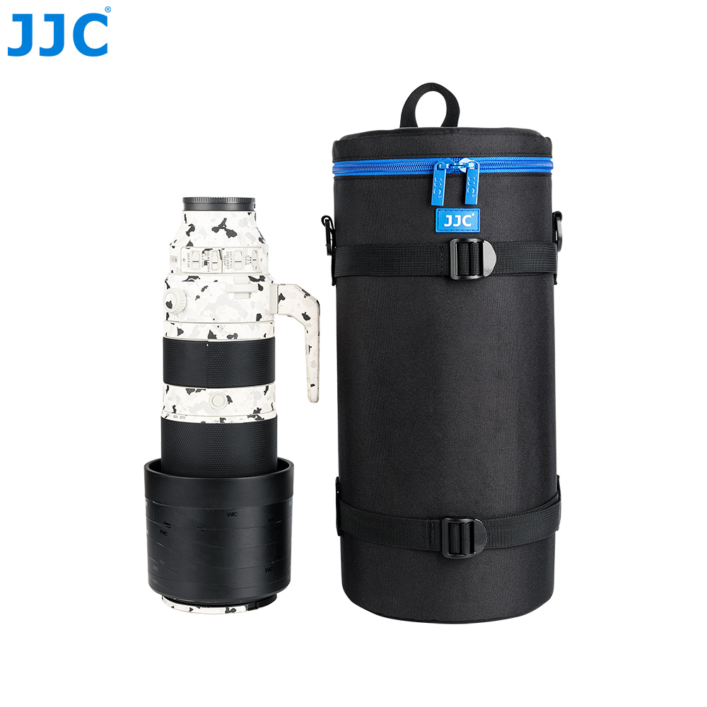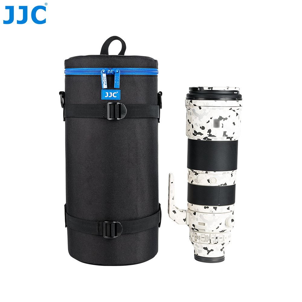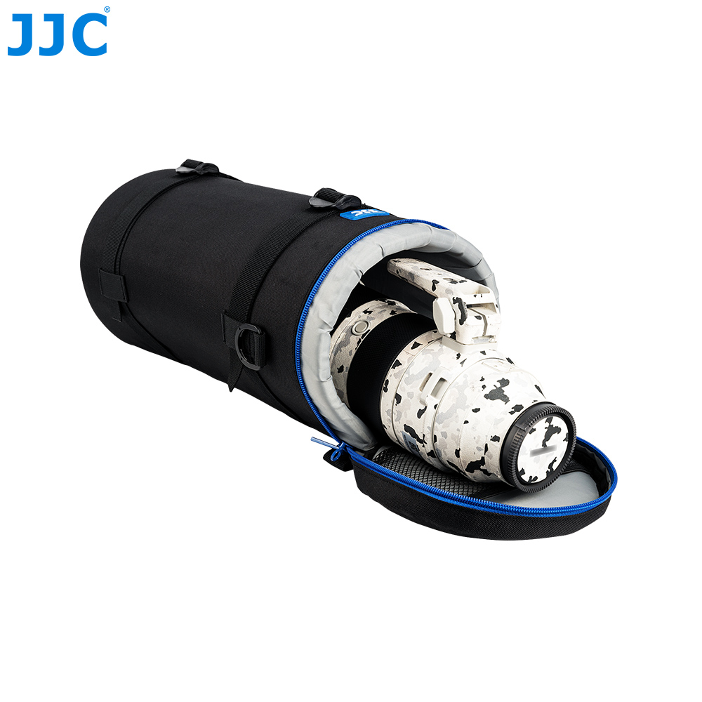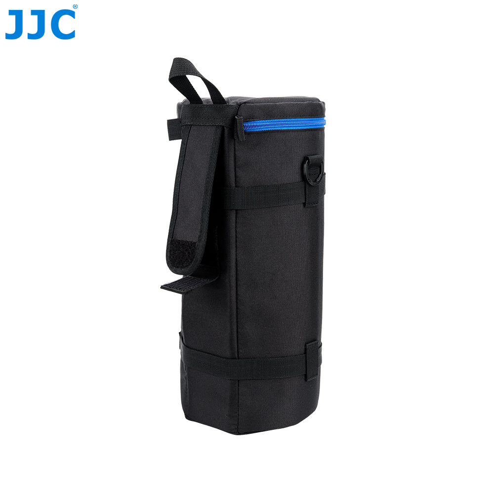 JJC Deluxe Lens Pouch is designed to carry a typical SLR lens. This pouch features heavy-duty polyester construction with a foam cushion interior. It provides great protection and shock absorption for your lens. Besides, its exterior material is water-resistant, which can protect your lens from rain and moisture. It has deep blue two way zipper with a mesh accessory pocket inside the lid. The two zipper sliders are designed with small loops, thus you can lock them together with a small lock for security. You can put the small accessory, such as lens cap or remote controller, into the inside pocket.
