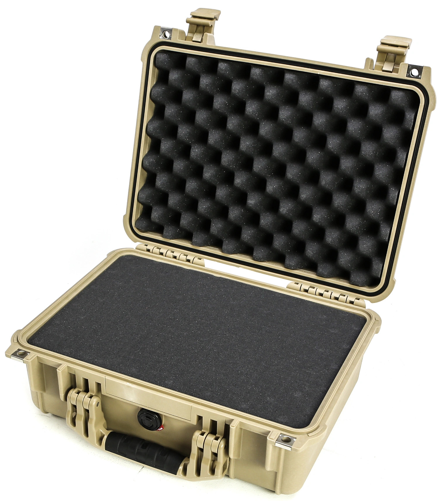 The Pelican 1450 Case with Foam (Black) is an unbreakable, watertight, airtight, dustproof, chemical-resistant and corrosion-proof hard case used to carry any kind of equipment that needs to be protected from the elements. It is made of Ultra High Impact structural copolymer that makes it extremely strong and durable. It includes a 0.25" (6.4 mm) neoprene o-ring, easy-open double throw latches that seal perfectly, and an automatic pressure equalization valve for quick equalization after changes in atmospheric pressure. The case has a comfortable rubber over-molded handle.