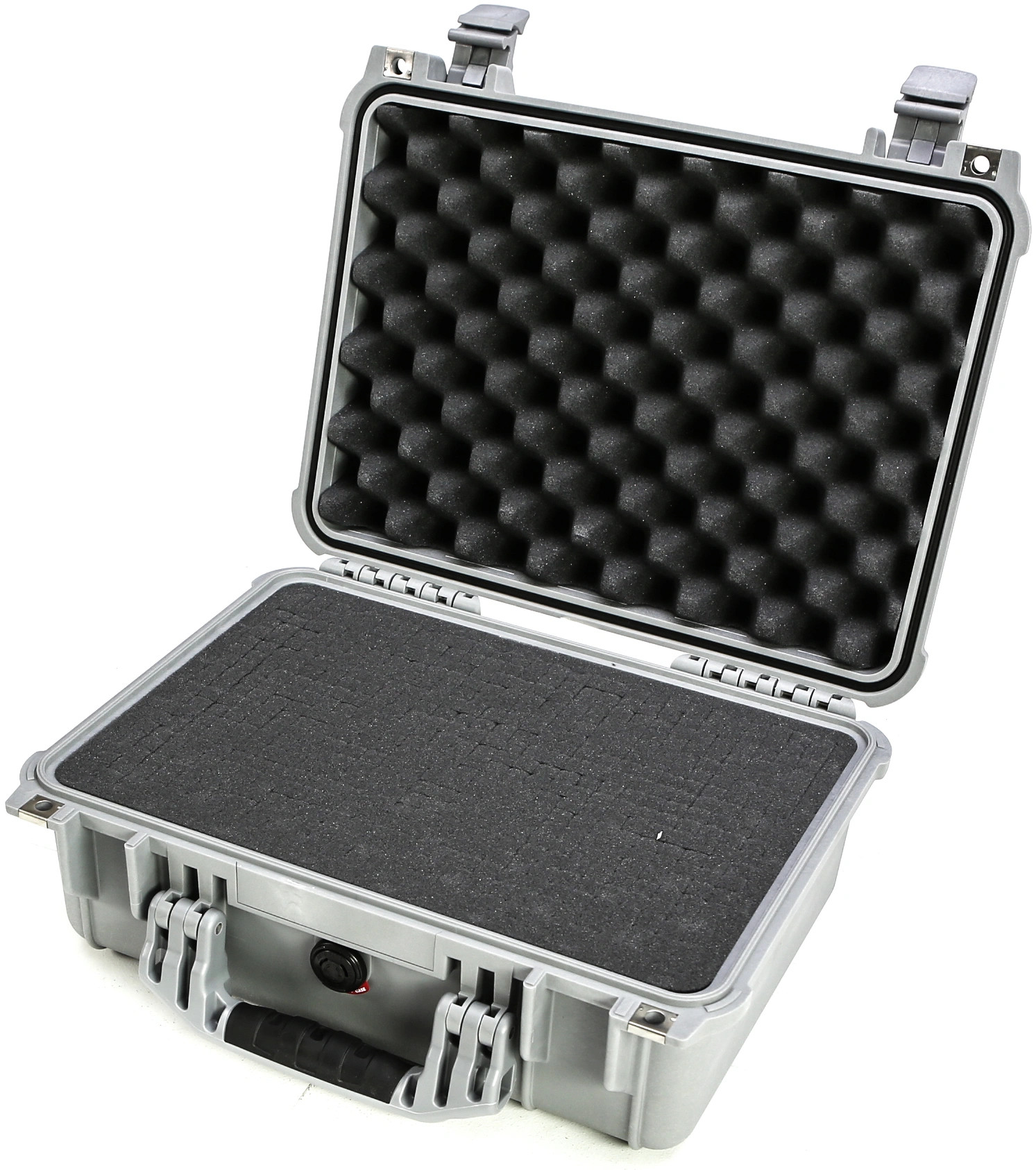 The Pelican 1450 Case with Foam (Black) is an unbreakable, watertight, airtight, dustproof, chemical-resistant and corrosion-proof hard case used to carry any kind of equipment that needs to be protected from the elements. It is made of Ultra High Impact structural copolymer that makes it extremely strong and durable. It includes a 0.25" (6.4 mm) neoprene o-ring, easy-open double throw latches that seal perfectly, and an automatic pressure equalization valve for quick equalization after changes in atmospheric pressure. The case has a comfortable rubber over-molded handle.