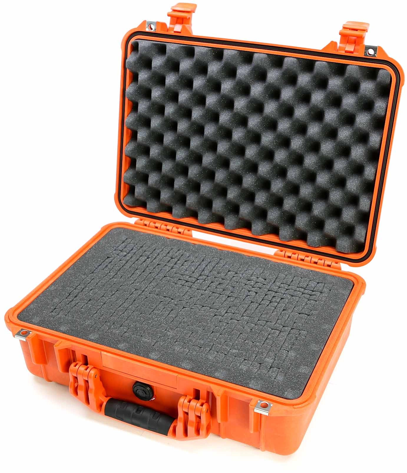 The Pelican 1500 Case with Foam (Black) is an unbreakable, watertight, airtight, dustproof, chemical-resistant and corrosion-proof hard case used to carry any kind of equipment that needs to be protected from the elements. It is made of Ultra-High Impact structural copolymer that makes it extremely strong and durable. It has a 0.25" (6.4mm) neoprene o-ring, easy-open double throw latches that seal perfectly. It includes an automatic pressure equalization valve for quick equalization after changes in atmospheric pressure. It is carried by a folding rubber over-molded handle.