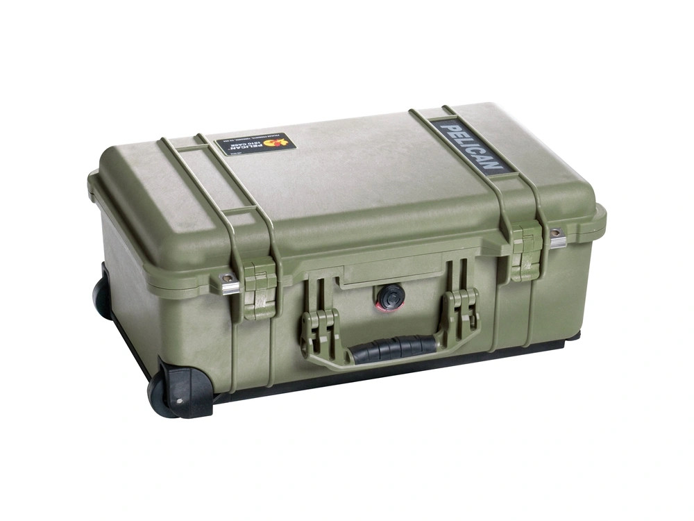 The 1510 comes with long side handles, a long front handle, retractable extension handle and strong polyurethane wheels with stainless steel bearings. It has an effortless release latch for the extension handle. The case meets current FAA requirements for carry on luggage.