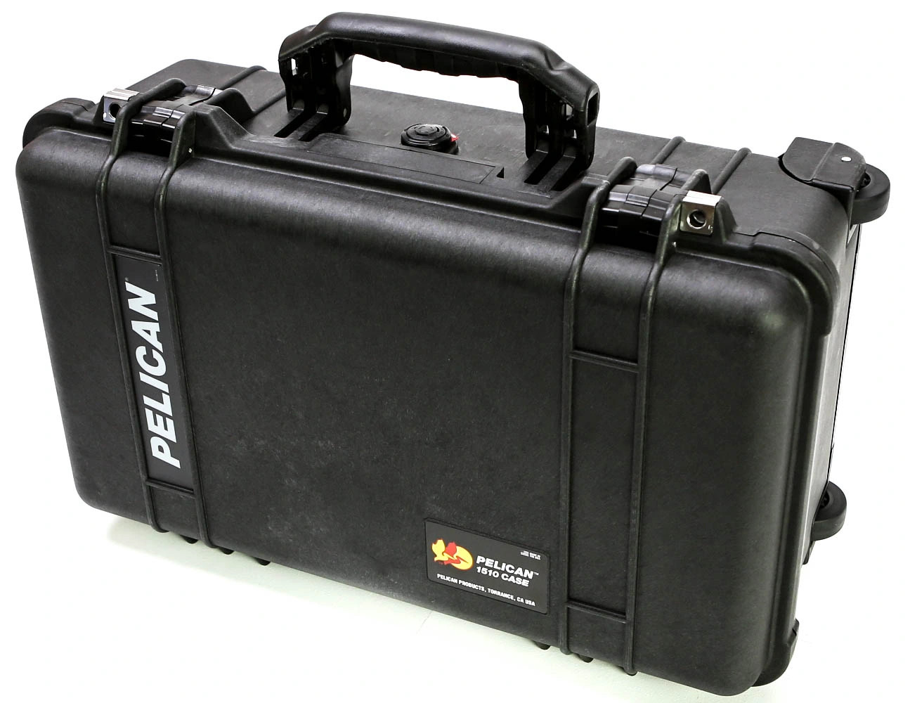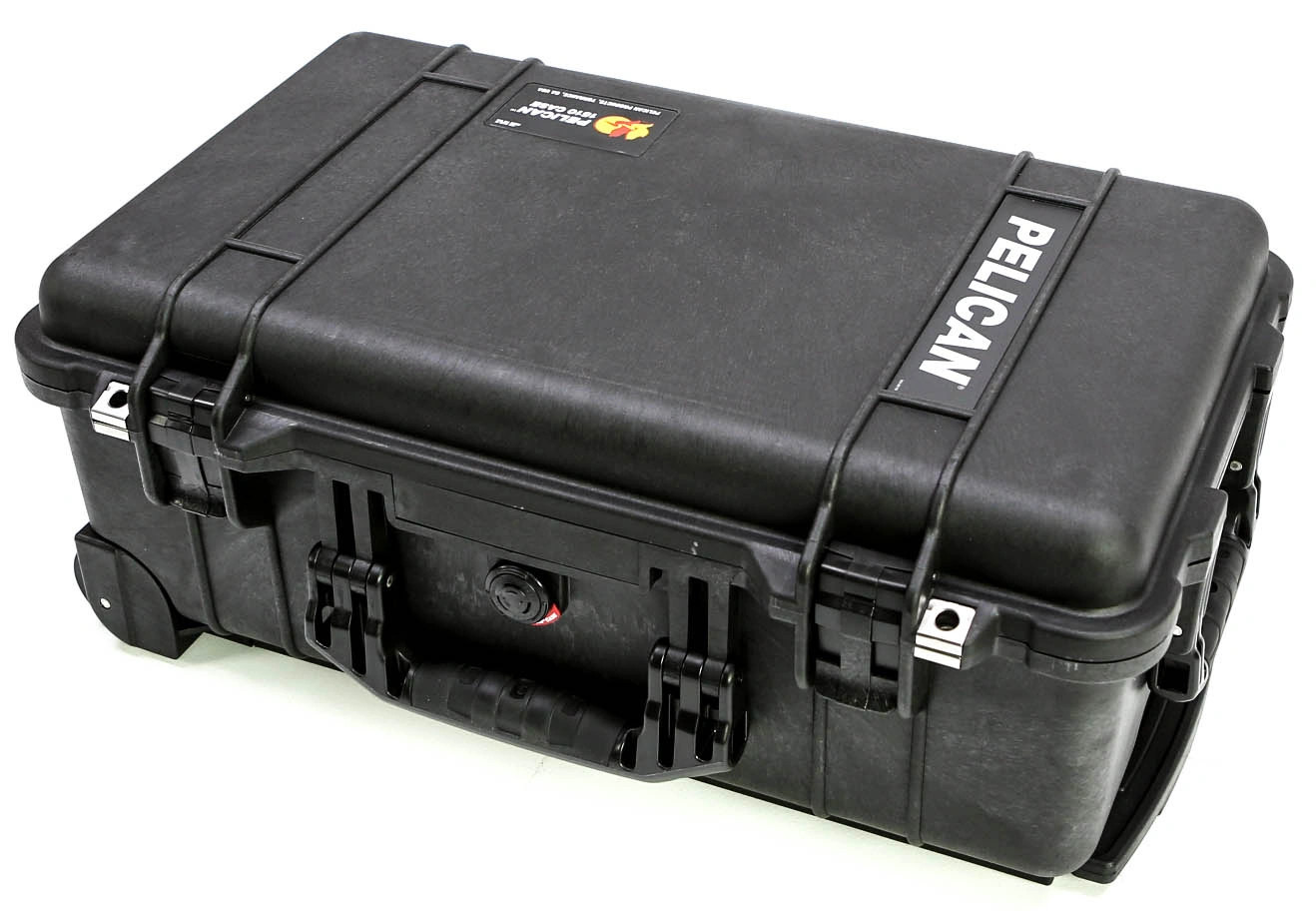 The 1510 comes with a long side handles, long front handle, retractable extension handle and strong polyurethane wheels with stainless steel bearings. It has an effortless release latch for the extension handle. The case meets current FAA requirements for maximum carry on luggage.