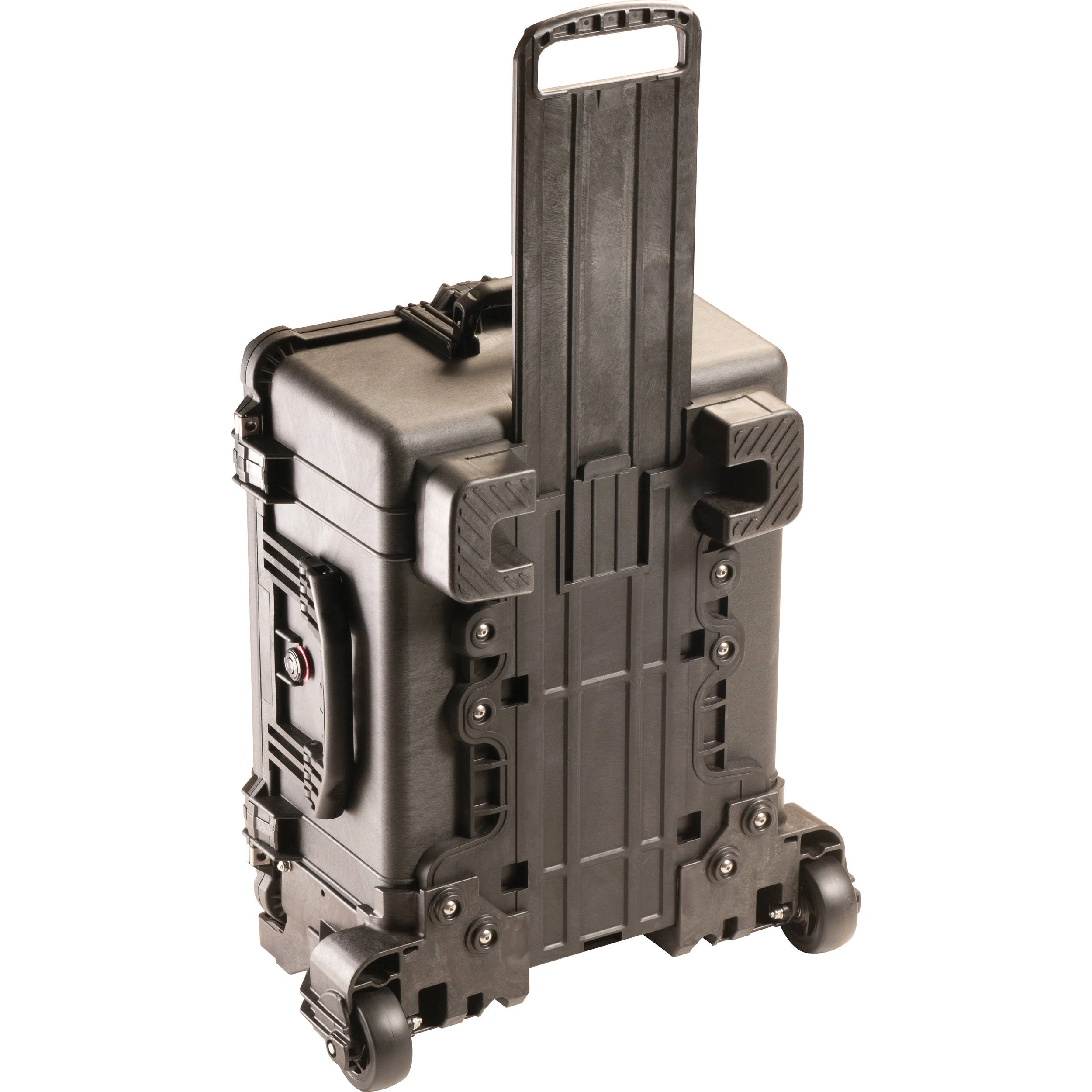 The 1610MNF Case from Pelican is an airtight, crushproof, dust and water resistant hard case for use in rugged terrain.It includes a mobility kit which adds a retractable extension handle and a built-in dolly system with 10.16 cm polyurethane wheels and stainless steel ball bearings.You can travel knowing that your gear inside this case is protected thanks to its solid polypropylene walls and watertight polymer o-ring seal. An automatic purge valve allows you to open the case after changes in atmospheric pressure at any altitude, making it suitable for air travel. The double-throw latches on the side of the case can withstand almost 199.6 kg of pressure, yet allow you to open and close the case with a light push or pull. Stainless steel hardware and padlock protectors prevent corrosion while providing extra strength against theft.