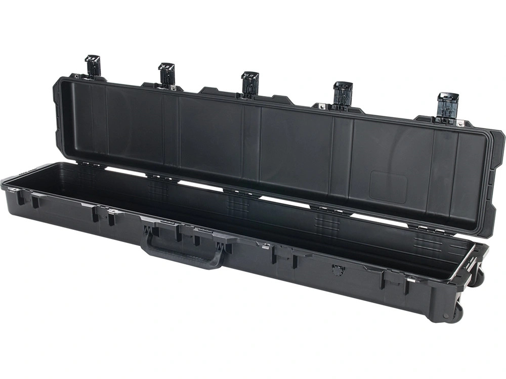 The Pelican iM3410 Storm Case without Foam has the same legendary DNA as our Pelican Protector Case, with one primary difference: A unique Press and Pull latch that locks automatically, but open with a light touch. Pelican I Series cases are constructed from an HPX high-performance resin, that is virtually unbreakable, dent-resistant and shatter-resistant. It is tough, rugged, lightweight, airtight and watertight. The case has unbreakable moulded-in hasps that allow the addition of standard size padlocks. It has hinges with integrated feet that hold fast under impact, and create a flat surface for upright stability. It is carried by three double-layered, soft-grip, solid-core handles, lightweight retractable, telescoping handle and rugged in-line wheels.