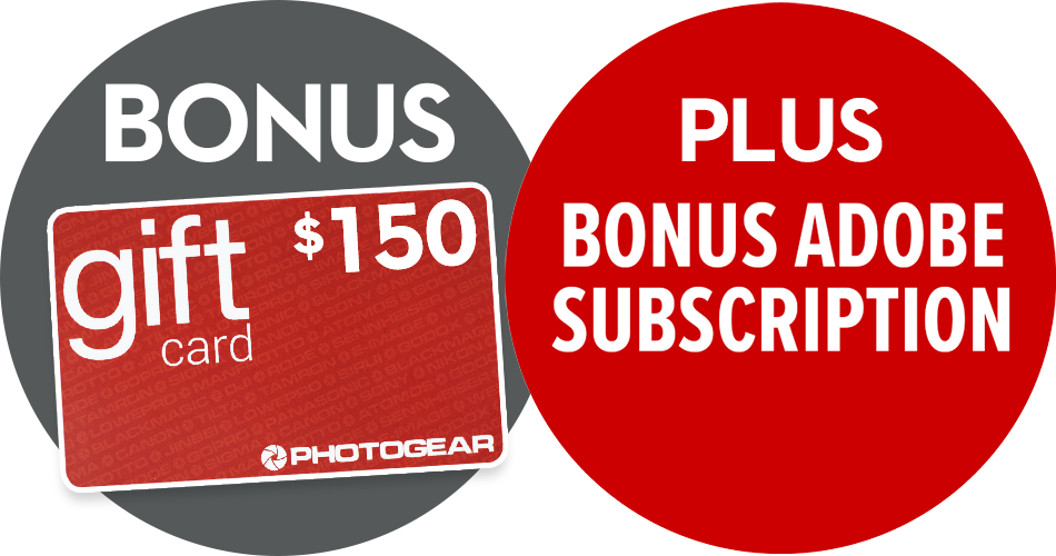 Purchase an eligible Canon camera or lens and receive a BONUS Adobe Subscription* (up to $534 value) via online redemption.