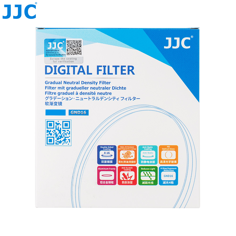 The JJC F-G16 Gradual Neutral Density Filter provides 4-stop exposure reduction, which is specially designed for shooting scenes with a large contrast between the sky and ground. It properly exposes the sky without underexposing the ground. This filter is constructed from HD optical glass with MCR coating and has 8-layer coating on each surface of the glass. The multiple coatings makes the filter anti-scratch, oil and water-resistant. After fine grinding and polishing, clear image quality and high color accuracy are ensured. The transition of the filter is even and smooth, following the distribution of the natural light, to avoid black lines on the image caused by rigid transition. The frame is made of high quality aluminium alloy and the thickness is only 4.6mm, which can effectively avoid vignetting when using. The upper part of the frame is adjustable to change the using effects. Besides that, the filter comes with a delicate moistureproof filter case to protect your filter and for easy carrying. The JJC F-G16 Gradual Neutral Density Filter has different thread sizes available from 49-82mm.