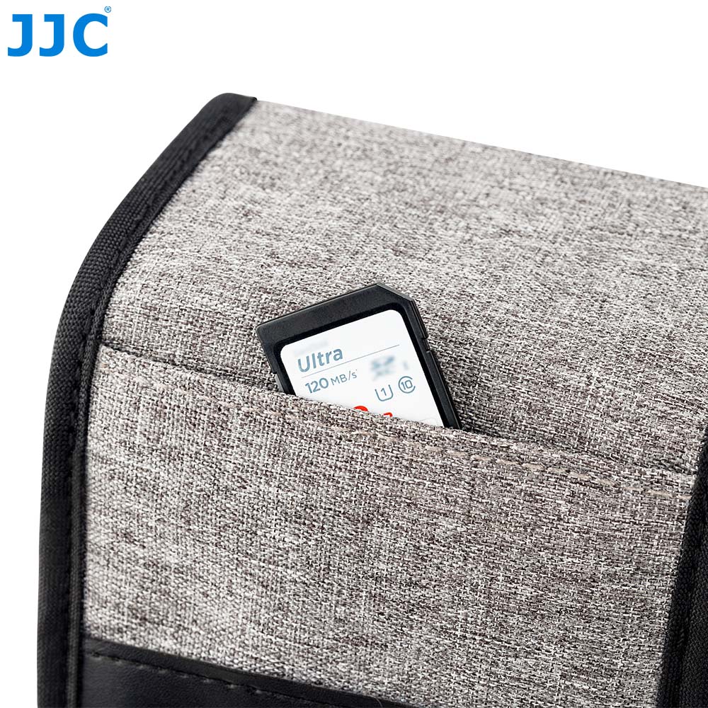 JJC OC-FX1 GRAY Compact Camera Pouch is specially designed to carry and keep your gear handy safely. It is also available for the mobile phone, power bank and charging cable, etc., convenient for your traveling. And the interior size of the camera pouch is 5.9x3.5x3.5"/ 150x90x90mm. The pouch is made of high-quality polyester, which is sturdy and provides years of reliable use. The soft interior lining is meant to be gentle on your camera screen and lens. The flap opening with hook-and-loop closure offers quick access to your gear. On the outside of the front flap is a small pocket sized to hold memory cards or card readers, while the two pockets on the sides of the pouch are for storing small items such as batteries.