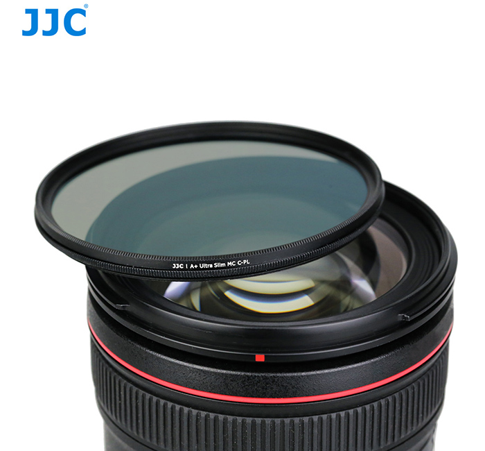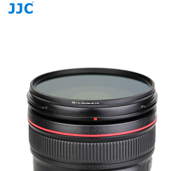 JJC A+ F-CPL Series Ultra Slim Multi-Coated Circular Polarizing Filters are designed to reduce reflections and glare by filtering out light that has become polarized due to reflection from a non-metallic surface such as water and glass. This results in a noticeable increase in the saturation of skies and foliage, as well as clearer imagery when photographing in hazy condition. The effect can be seen through the viewfinder and changed by rotating the filter. This series filters is constructed from Japanese optical glass for maintained image quality and is set in a precision milled aluminum frame. It features an incredibly slim design that the glass measures just 0.08" (2mm) thick, helping to minimize the likelihood of vignetting. Hardness of the filter’s glass is up to 9HD, which provides additional protection in case of drops or situations where scratching could occur. There are 6 layers of coatings on each surface of the glass. Most importantly, JJC A+ Series CPL filters adopts Japanese High-Rate Transparency (HRT) polarizing film and provides a polarization ratio up to 99.8% or above.