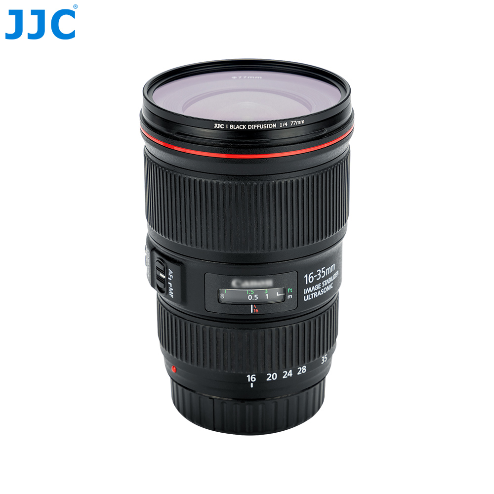 JJC F-BD Series Black Diffusion 1/4 Filter is specially designed for digital cinematography and video. It helps to reduce the value of the highlights while softening the overall contrast, creating a slightly reduced pearlescent halo around highlights that looks like it was taken with high quality vintage lens. The filter works great for smoothing out unwanted blemishes, wrinkles or other details in a subject's face while keeping the general image in focus to further enhance a subject's appearance and produce a desired effect.
