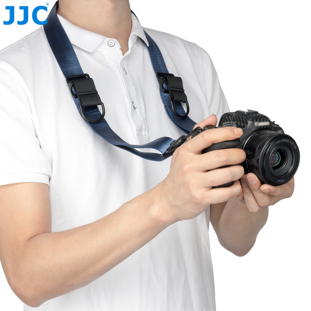 JJC QRS-D1 Quick Release Sling Strap is specially designed for professional DSLR cameras, which is suitable for sling-style, shoulder carry and neck carry styles. The camera sling strap comes in black, blue and silver grey colors to meet your different color favors. Made of ultra-smooth seatbelt type nylon webbing material, the sling strap is secure, comfortable and durable for years of use. Features with dual length quick adjusters, the strap supports one-hand length adjustment. Pulling the D ring on the length quick adjuster can quickly slide the adjuster and easily adjust the length of the strap, convenient to achieve different carry styles or meet the needs of different physique; the adjustable length of the strap is 37.4"-59"(95cm-150cm).