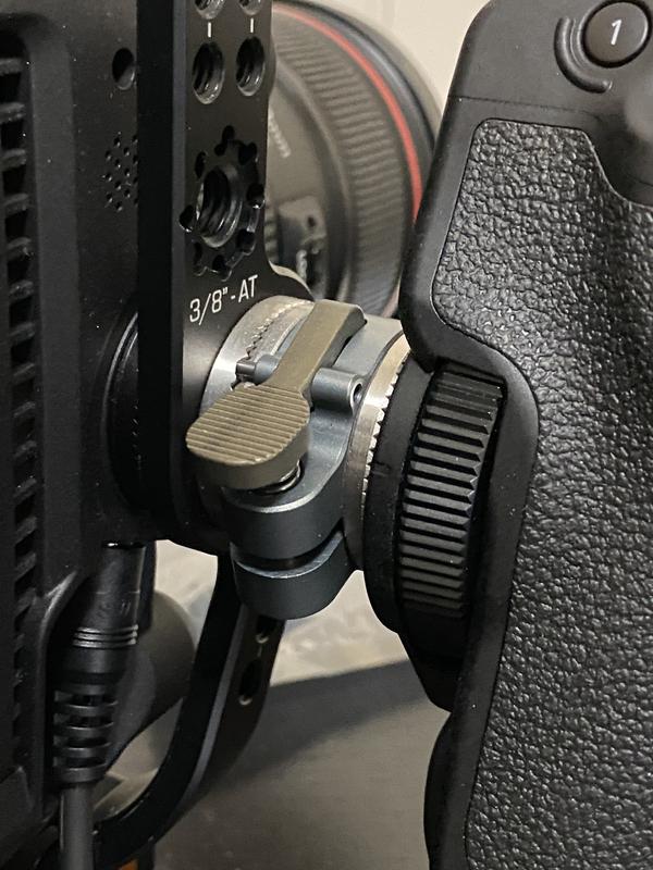 Add quick rotation adjustment to your handgrip or other camera rig accessories with this right-side, space gray Quick Release Rosette Module from Kondor Blue. The compact aluminum module features ARRI-style rosettes on either side and a quick release lever that allows you to quickly adjust your handgrip angle. The rosette features an M6 female thread for mounting a right-side handgrip and it allows 360° rotation.
