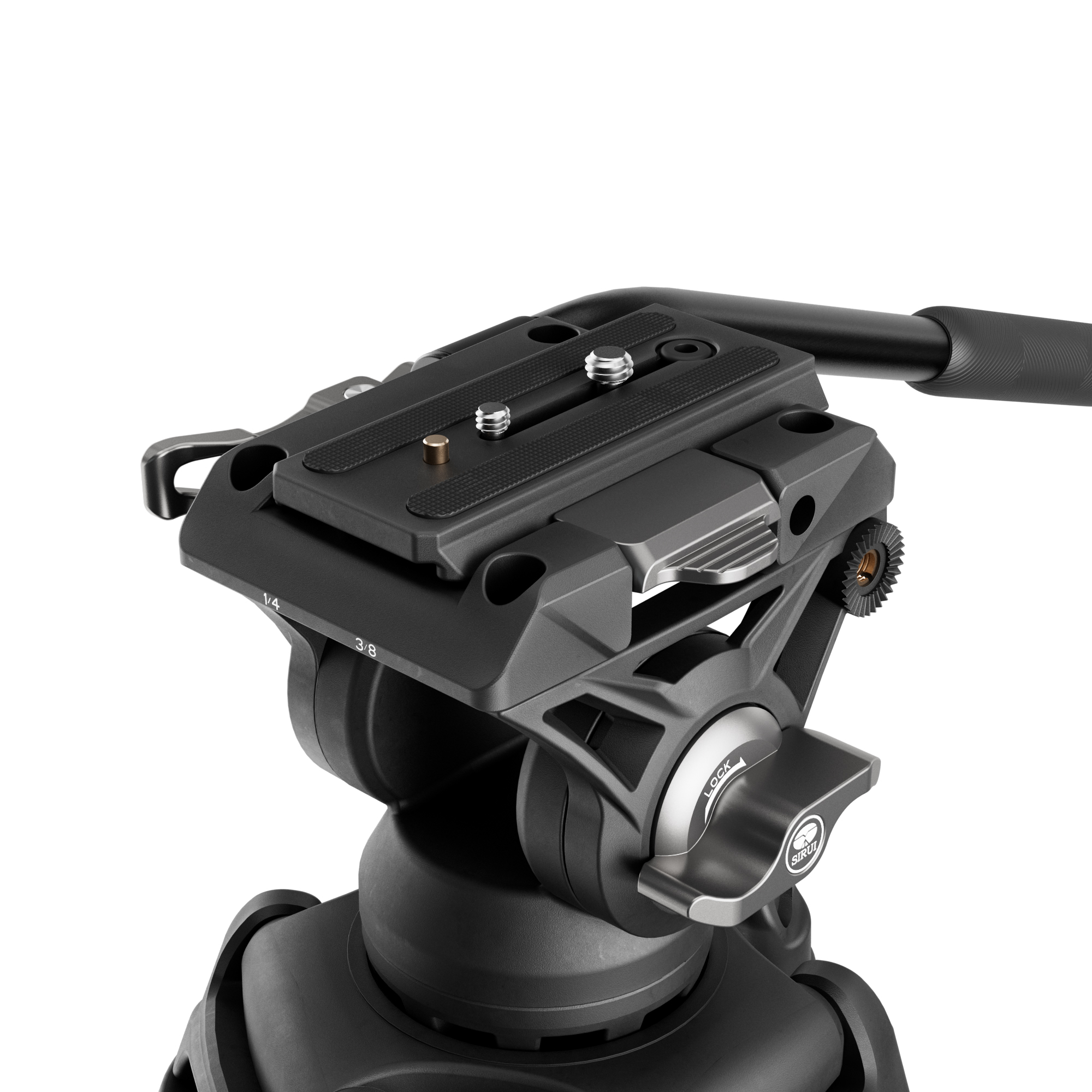 The 75 mm bowl allows angle adjustments by rotating the handle without tripod repositioning. Its hollow structure further reduces the total weight of the kit.