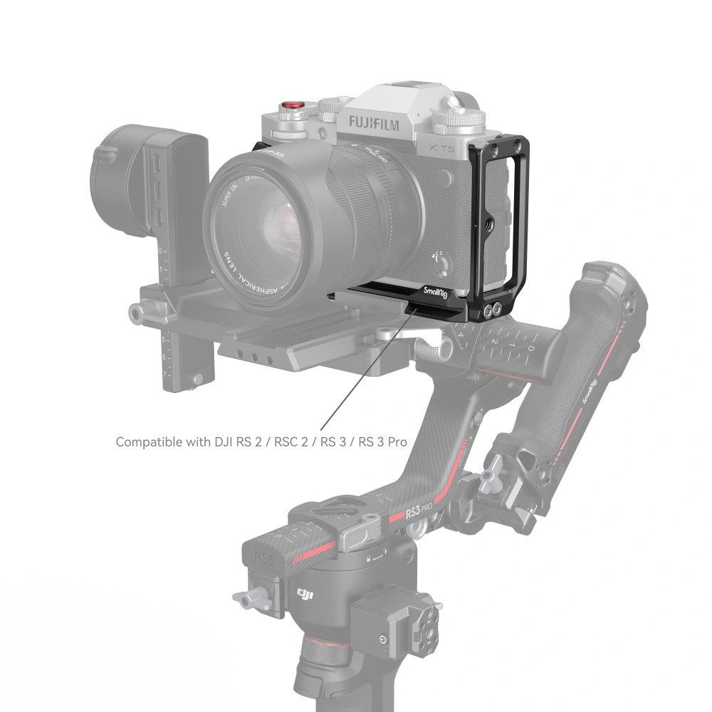 SmallRig L-Bracket for FUJIFILM X-T5 4137 is designed to facilitate the switch between horizontal and vertical modes and to improve grip experience. It locks the camera via one 1/4"-20 screw and one locating pin at the bottom, with rubber pads preventing scratches, and gives full access to buttons, card slots, battery door, and flip screen.