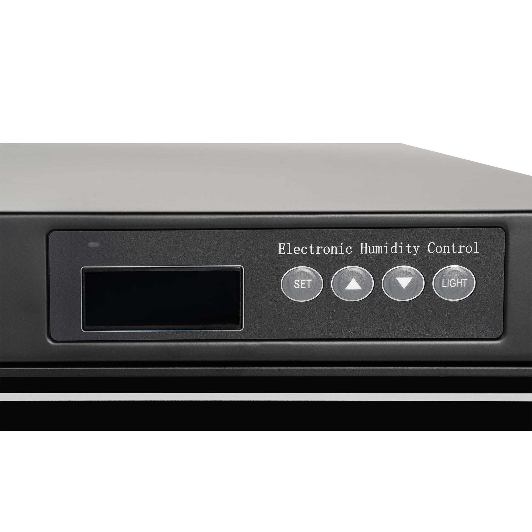 The HC200X remembers previous settings even after a power outage thanks to its smart memory function. Humidity and temperature are displayed on a clear LCD screen with button-based controls for easy adjustments. Manual LED lighting allows better visibility of stored items when needed.