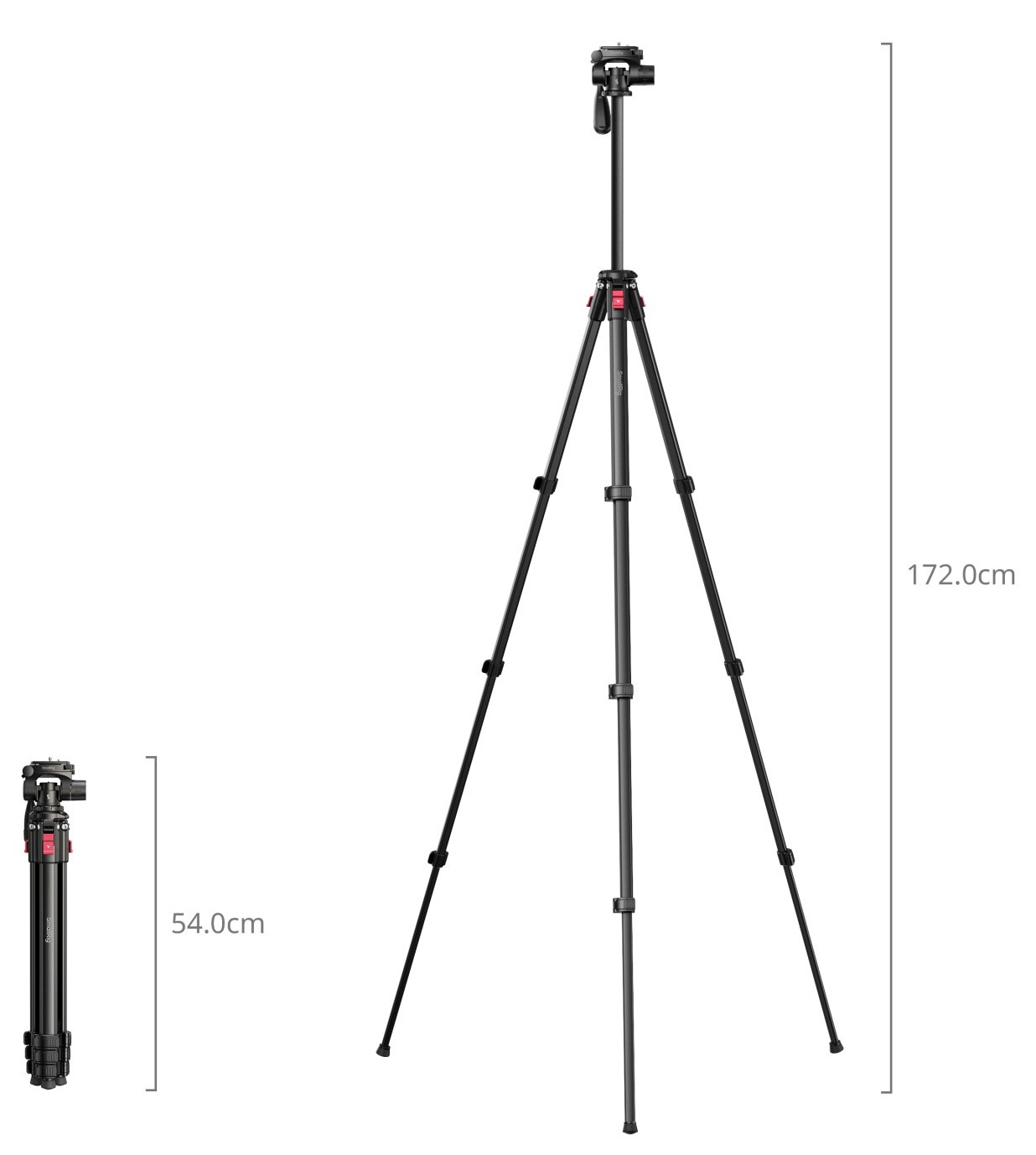 The adjustable center column extends to a working height of 172 cm and collapses to a compact 54 cm for transport. Weighing just 1.16 kg, it is highly portable for on-the-go shooting.