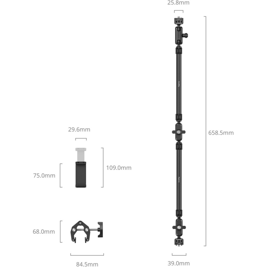 The SmallRig 5625 Desktop Magic Arm with Crab-Shaped Clamp Kit offers a comprehensive mounting solution for lightweight shooting equipment, including smartphones, webcams, and action cameras.