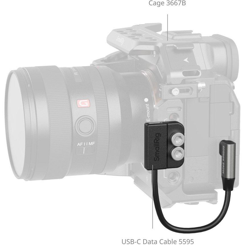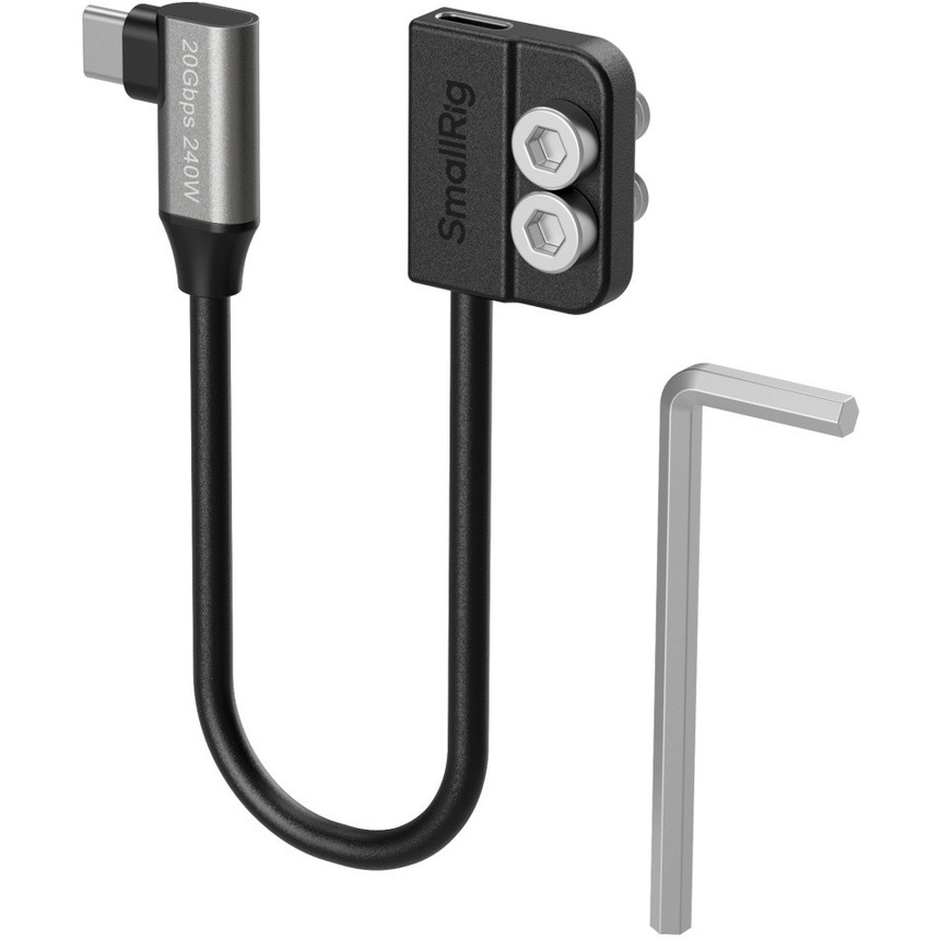 The SmallRig 5595 USB-C Data Cable (Male to Female) offers fast data transfer speeds up to 20Gbps and supports 240W power delivery. It features a secure connection with its female connector that can be fastened to cages or L-shaped mount plates.