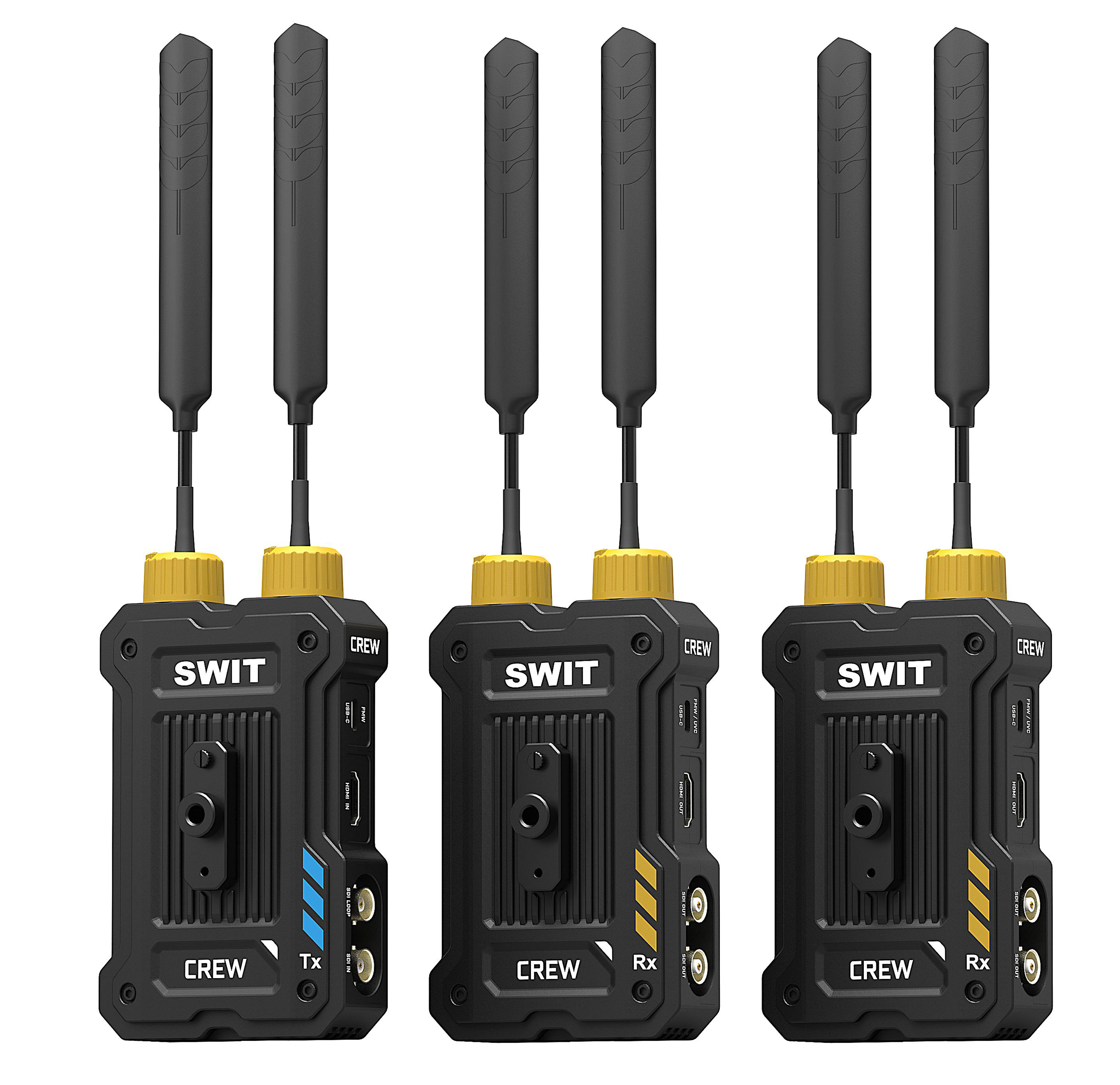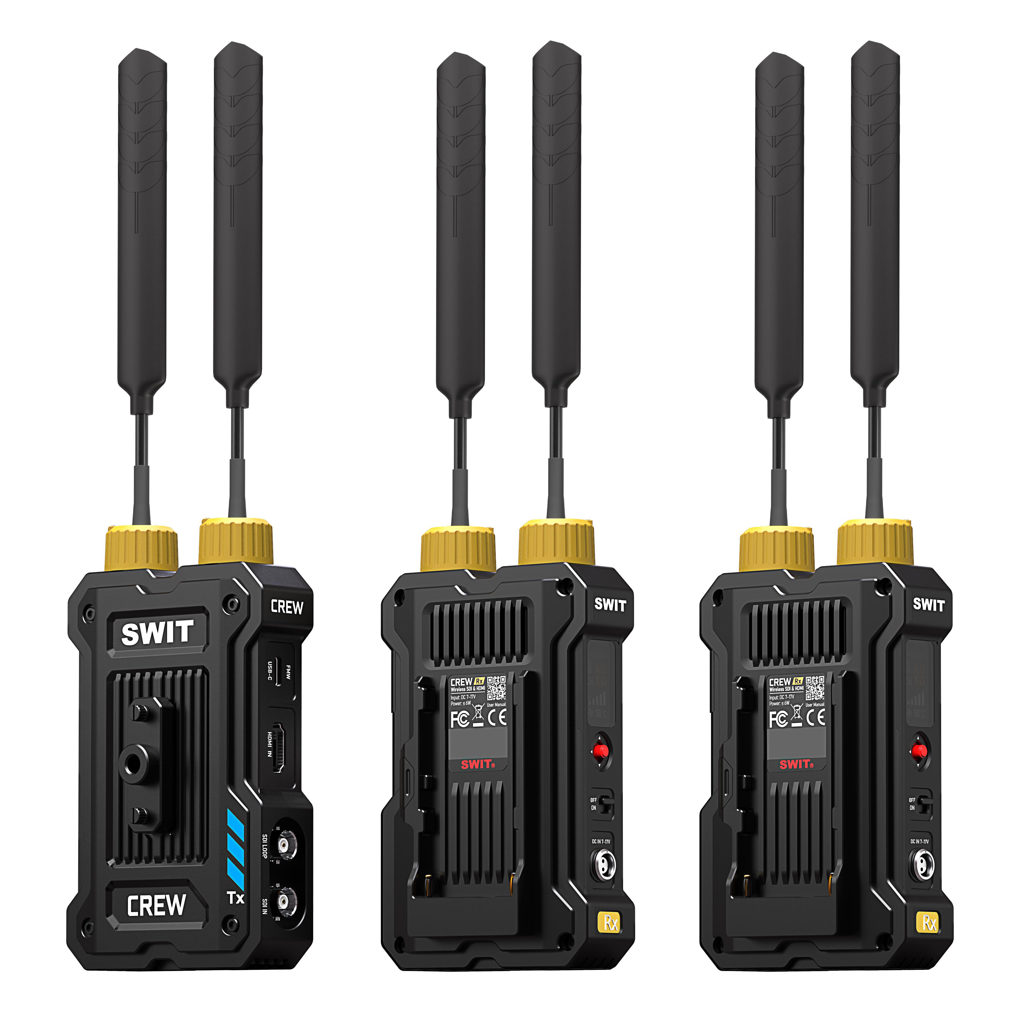 The SWIT CREW Wireless Video Transmission System is a next-generation wireless video transmission system engineered for professional broadcasting, cinematic production, and live event coverage. Featuring KUWI 2.0 Pro wireless RF technology—NOT Wi-Fi—it delivers ultra-stable HD video over distances up to 1.2 km (4000 ft) line-of-sight. With 32ms consistent low latency, visually lossless H.265 compression, and flexible input/output support, the CREW system is optimized for high-end, real-time video workflows.