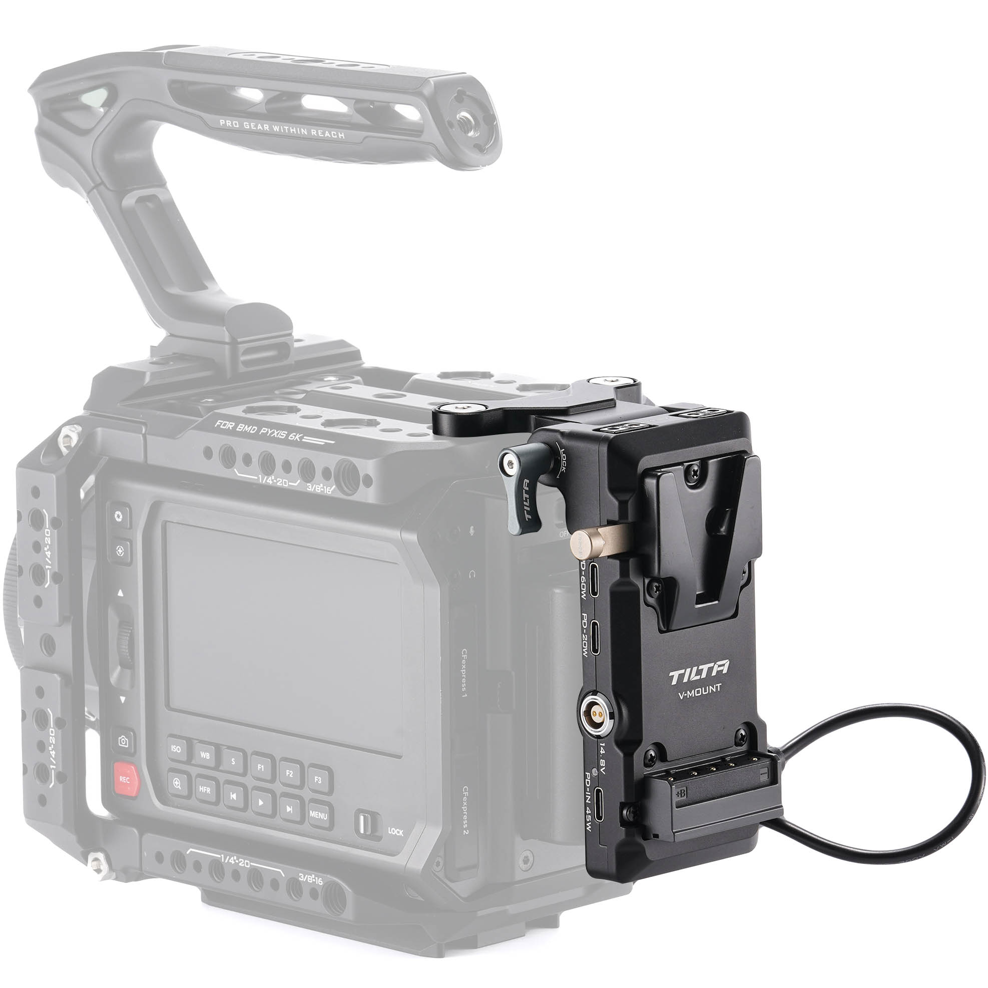 - The plate is custom designed specifically for the Blackmagic PYXIS 6K and 12K camera cage for seamless integration.