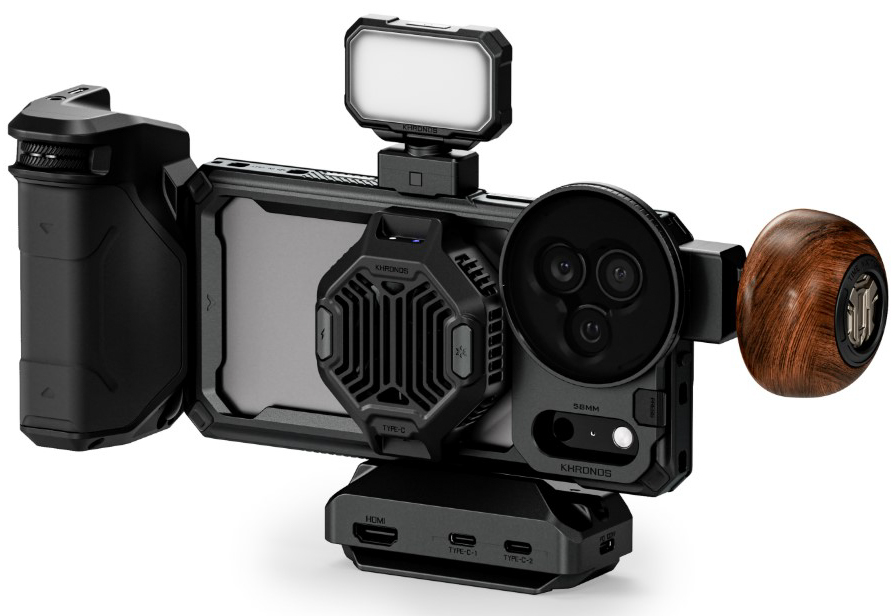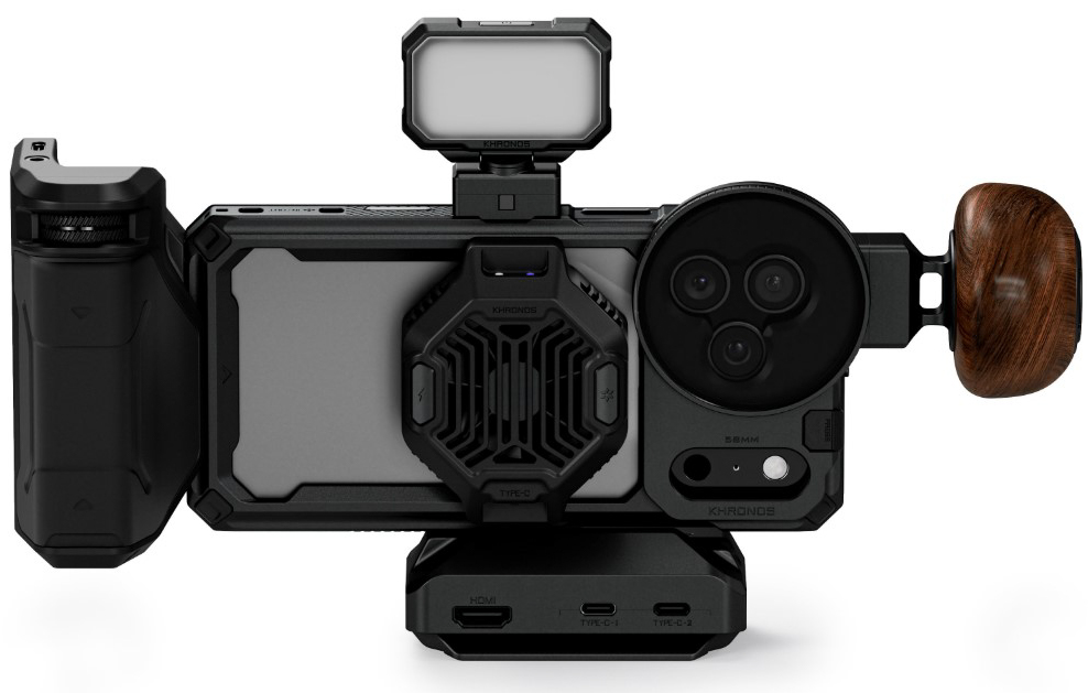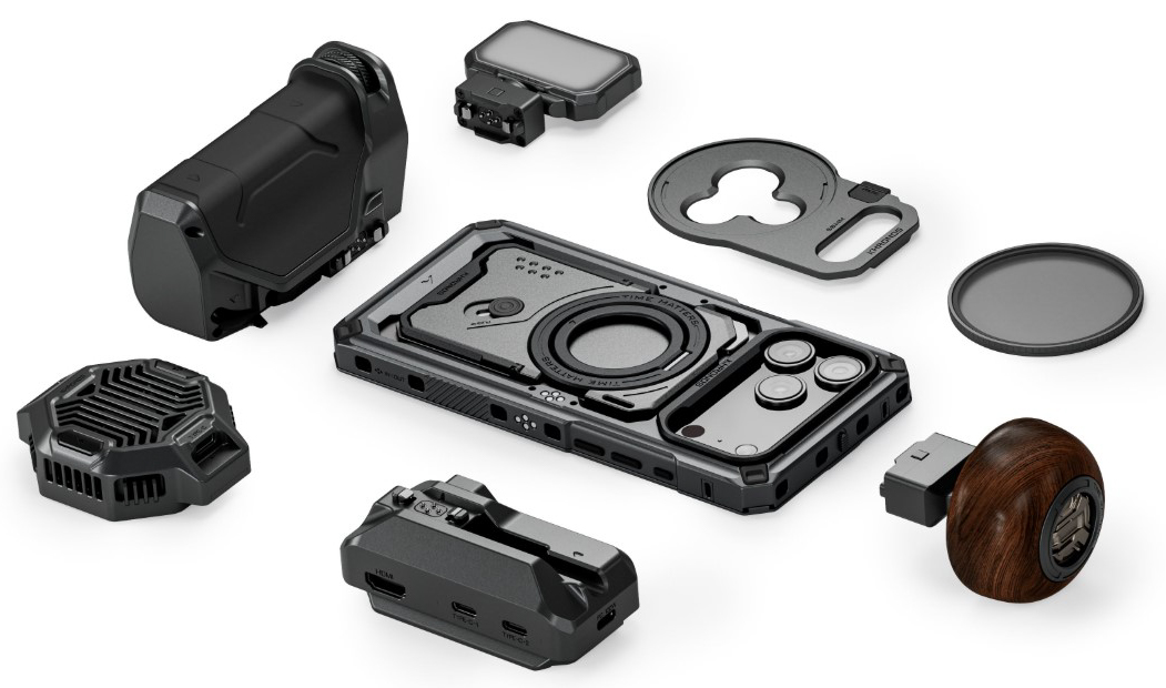 The kit includes everything needed to transform your iPhone into a professional filmmaking tool — from cooling and power management to precise control handles and optical accessories.